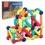 KLOCKI MAGNETYCZNE RURKI DLA DZIECI DUŻY ZESTAW EDUKACYJNY KREATYWNY 128 EL