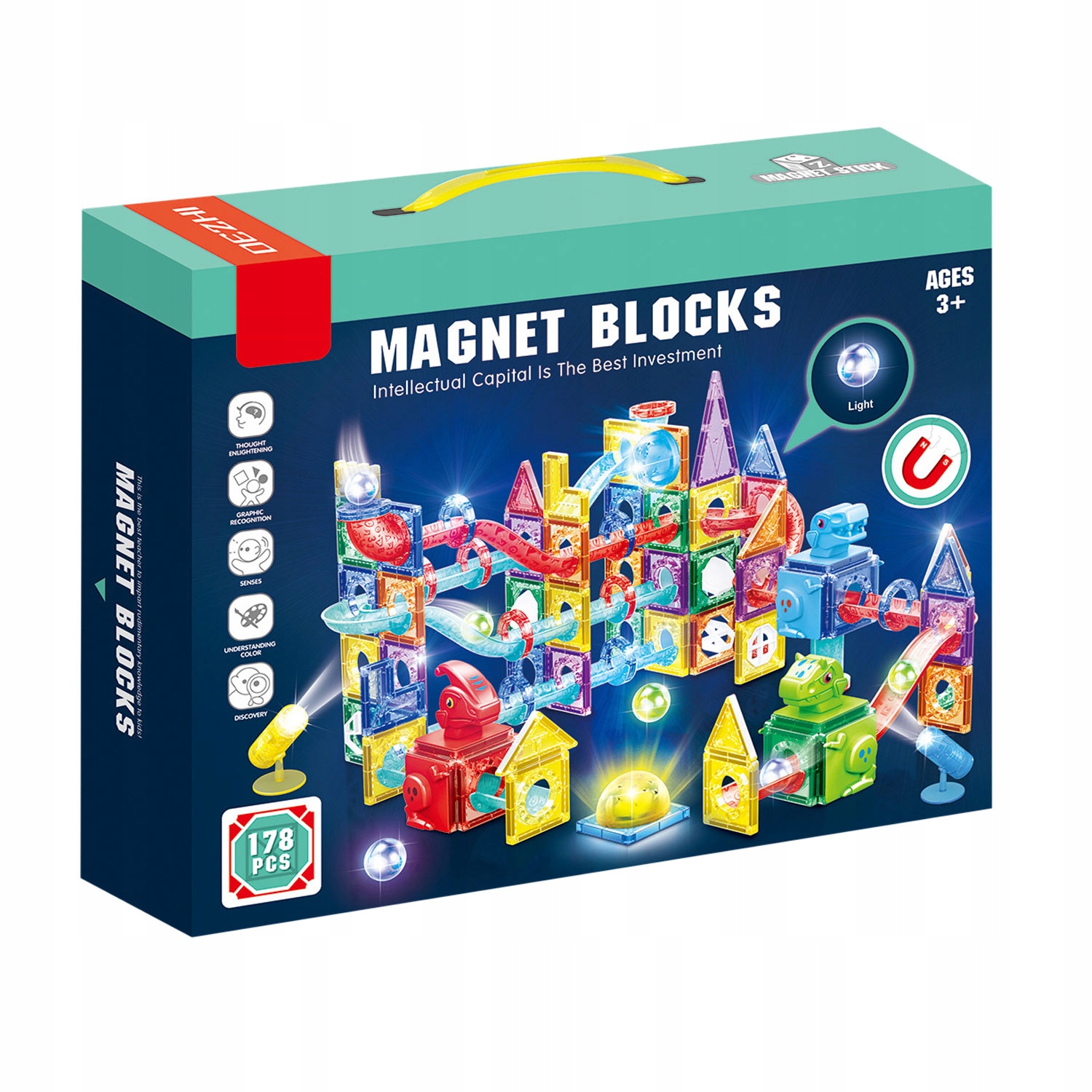 Zestaw klocków magnetycznych ze światłem - aż 178 elementów!