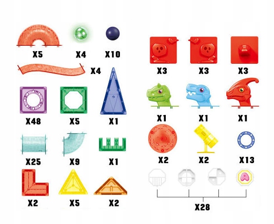 Klocki charakteryzują się łatwością łączenia poszczególnych elementów w dowolny sposób oraz pod różnymi kątami. Na bokach każdego klocka są wbudowane mocne magnesy neodymowe, którą z dużą siłą łączą ze sobą kolejne elementy tworząc przeróżne figury. Klocki można układać płasko tworząc tory, wężyki itp oraz przestrzennie budując przeróżne figury trójwymiarowe. W ten sposób dzieci będą mogły pobudzać swoją wyobraźnię przestrzenną.