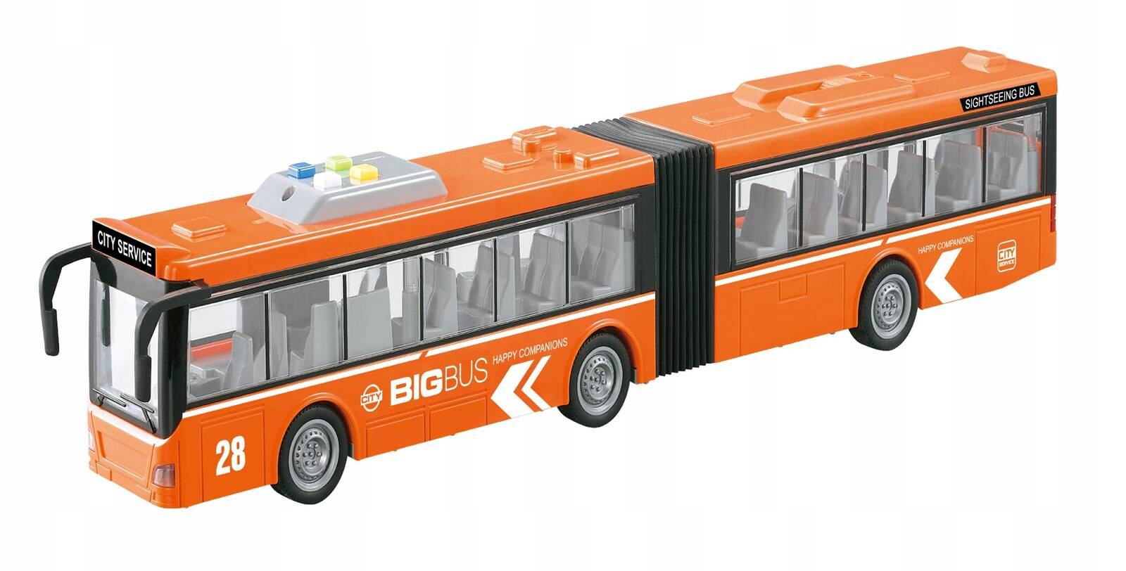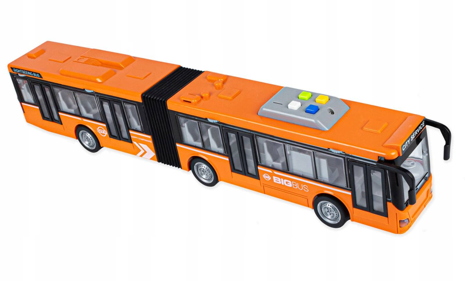 Nasz autobus przegubowy to miniaturowa wersja prawdziwego autobusu miejskiego. Został on zaprojektowany z dbałością o każdy szczegół - jego pomarańczowo-czarna kolorystyka odzwierciedla prawdziwe autobusy miejskie, a otwierane drzwi, realistyczny dźwięk oraz gumowe opony sprawiają, że zabawa jest jak najbardziej autentyczna.