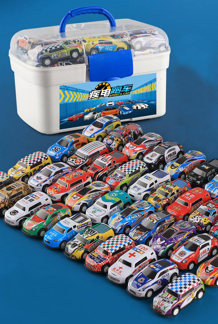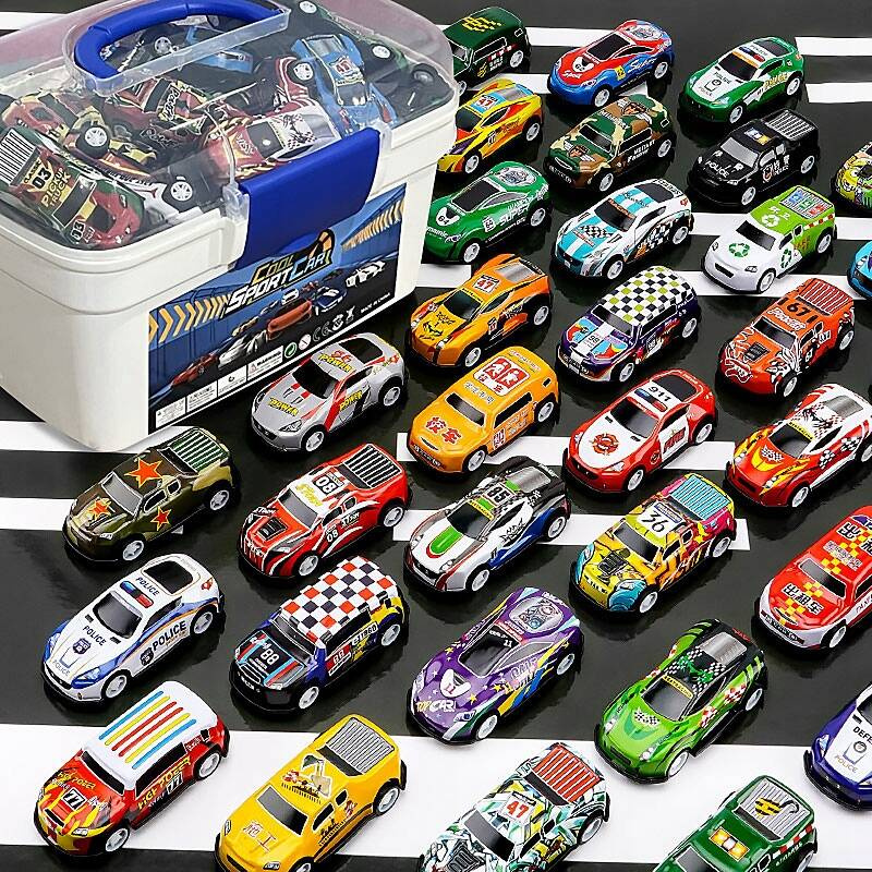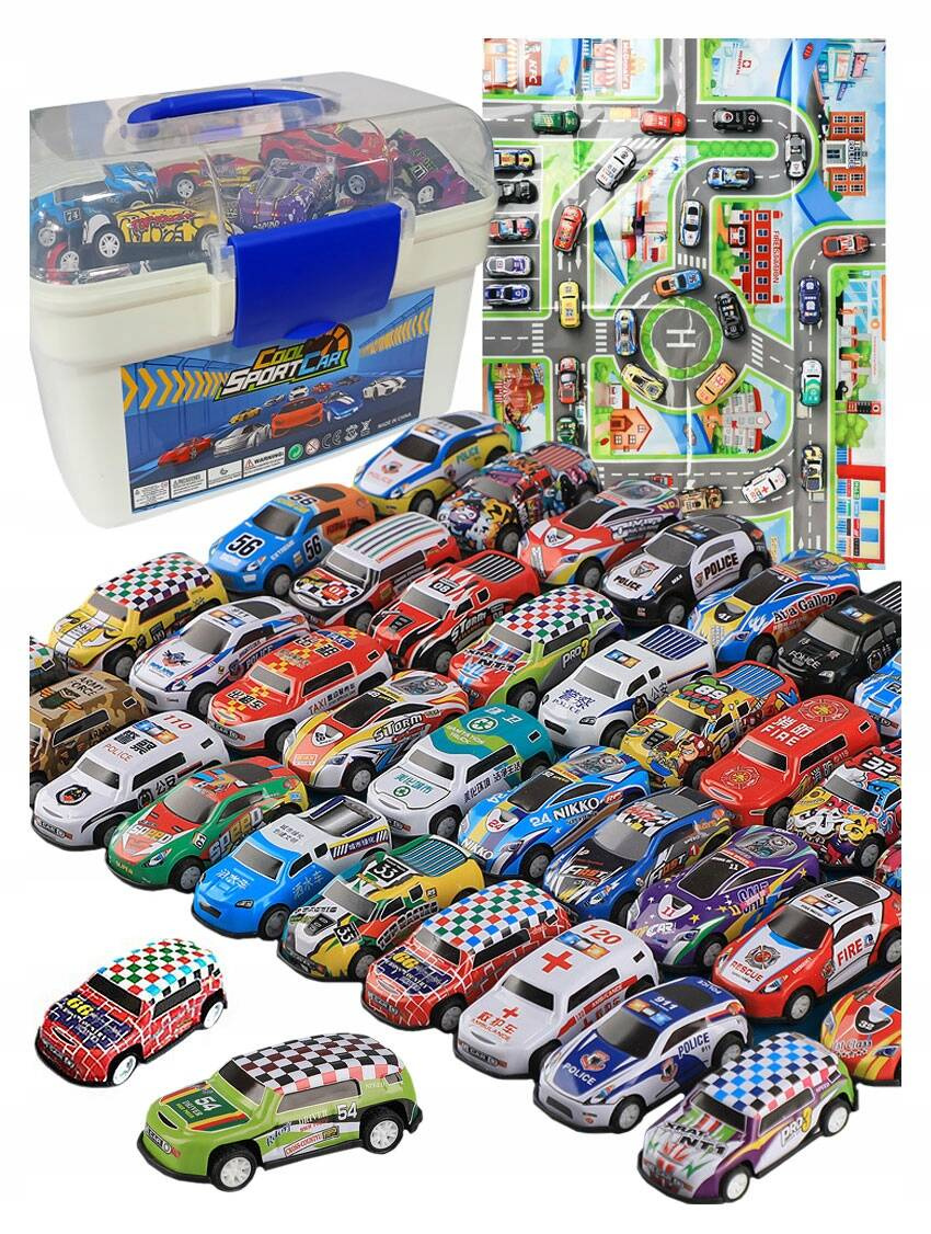 DUŻY ZESTAW RESORAKÓW WYŚCIGOWYCH Z NAPĘDEM, 49szt!
