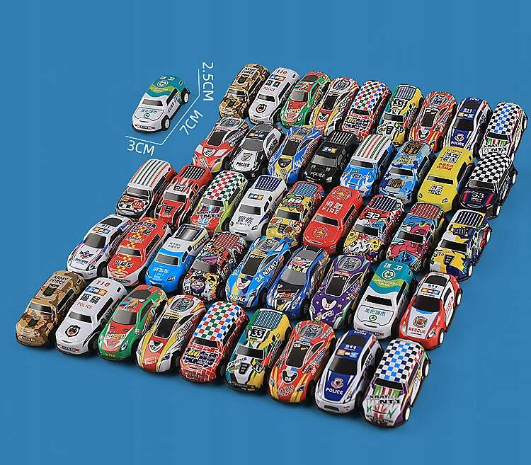 Auta posiadają różnokolorowe losowe wzory. Każdy jest niepowtarzalny! Idealnie nadają się także dla kolekcjonerów.