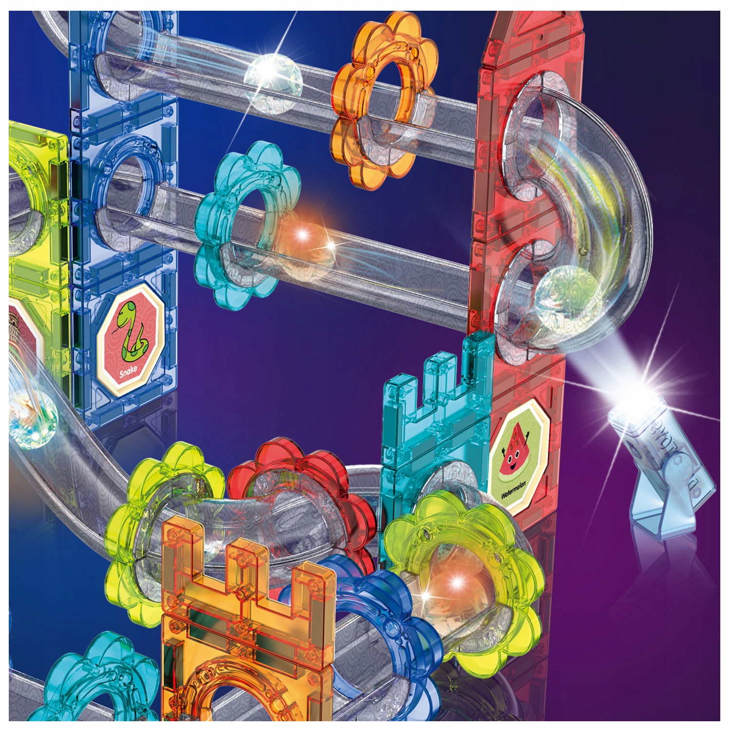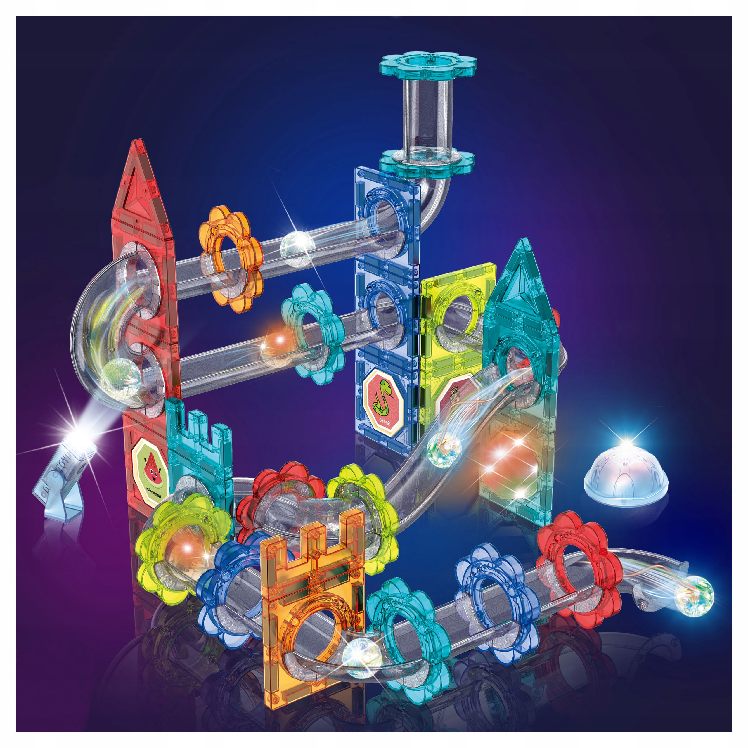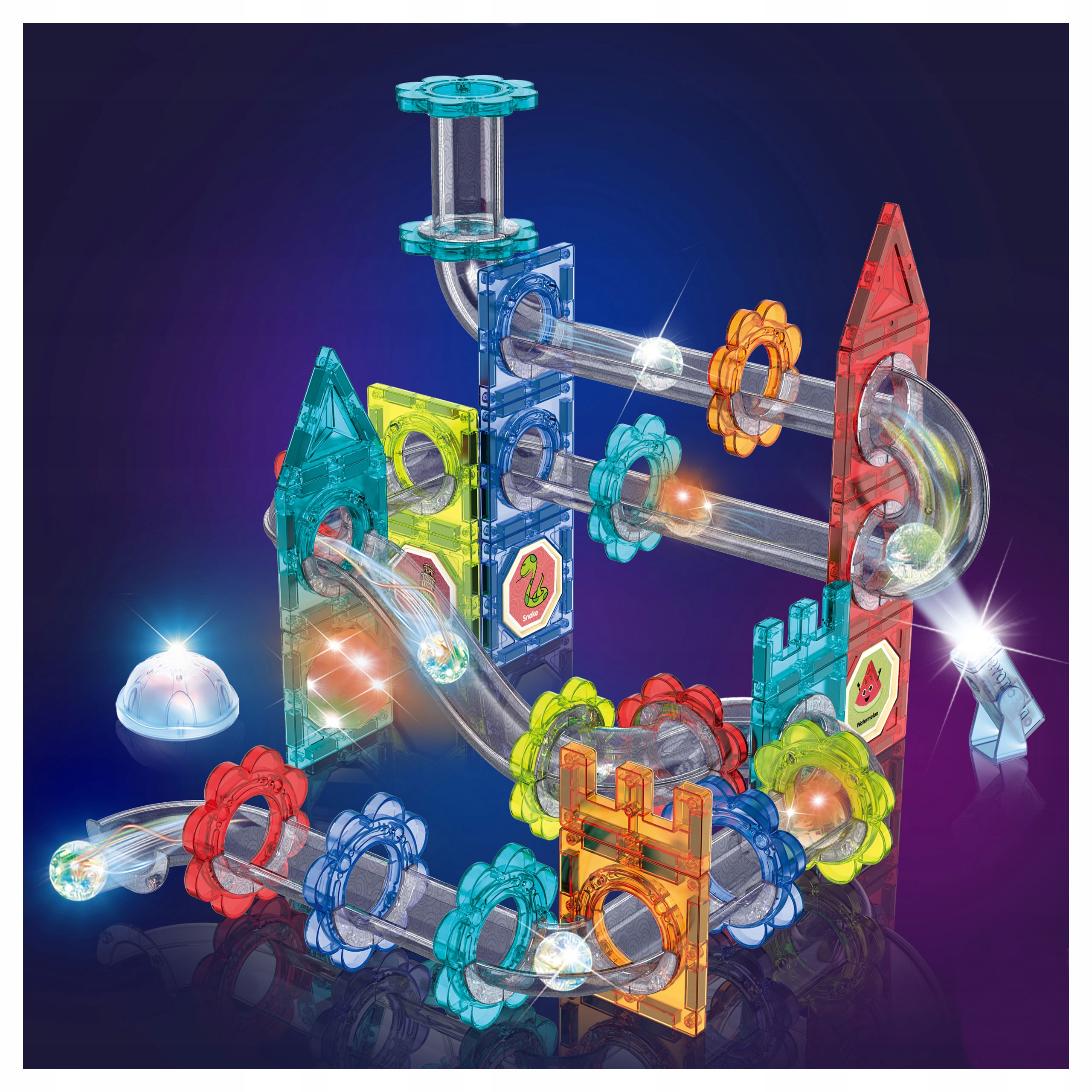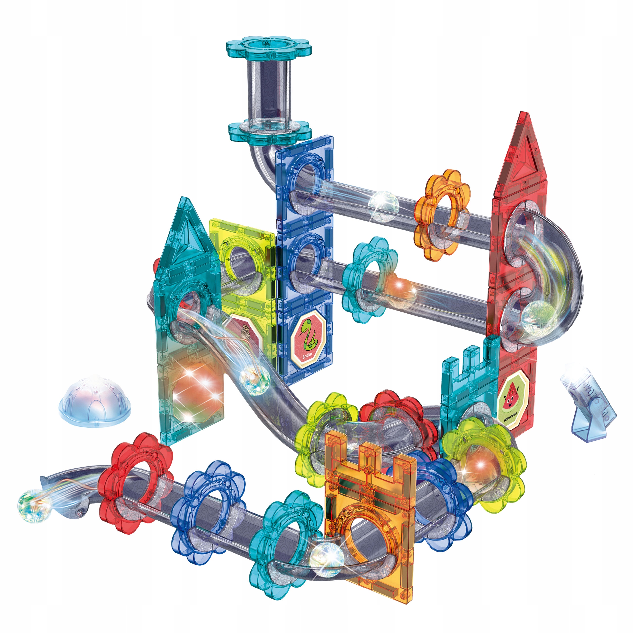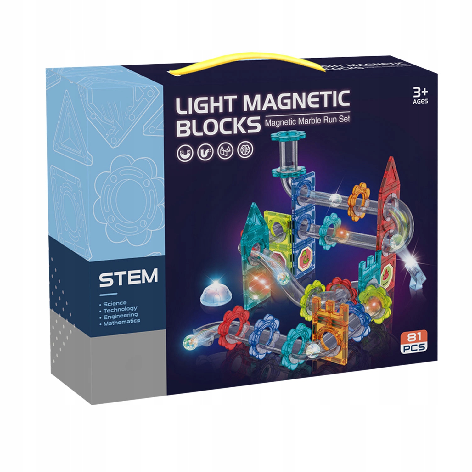 KLOCKI MAGNETYCZNE DLA DZIECI ŚWIECĄCY TOR KULKOWY KONSTRUKCYJNY ZESTAW LED
