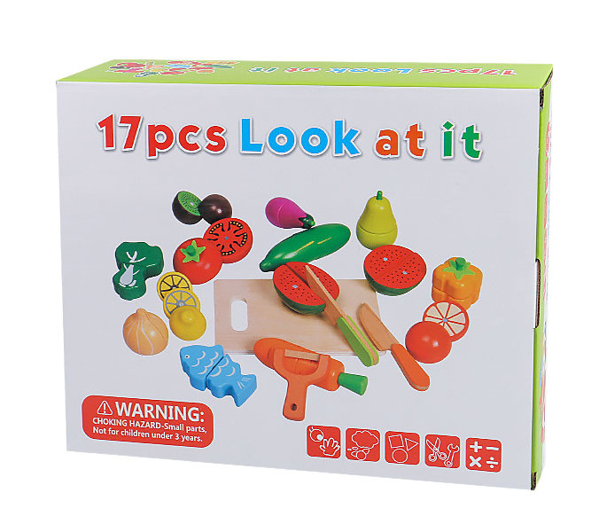 Zabawka idealnie nadaje się dla młodszych dzieci. Piękna, żywa kolorystyka zachęci dziecko do zabawy. Klocki można łączyć i rozczepiać tworząc wytworne dania czy sałatki ;) Produkty umieszczone są w pojemnej drewnianej skrzyni.