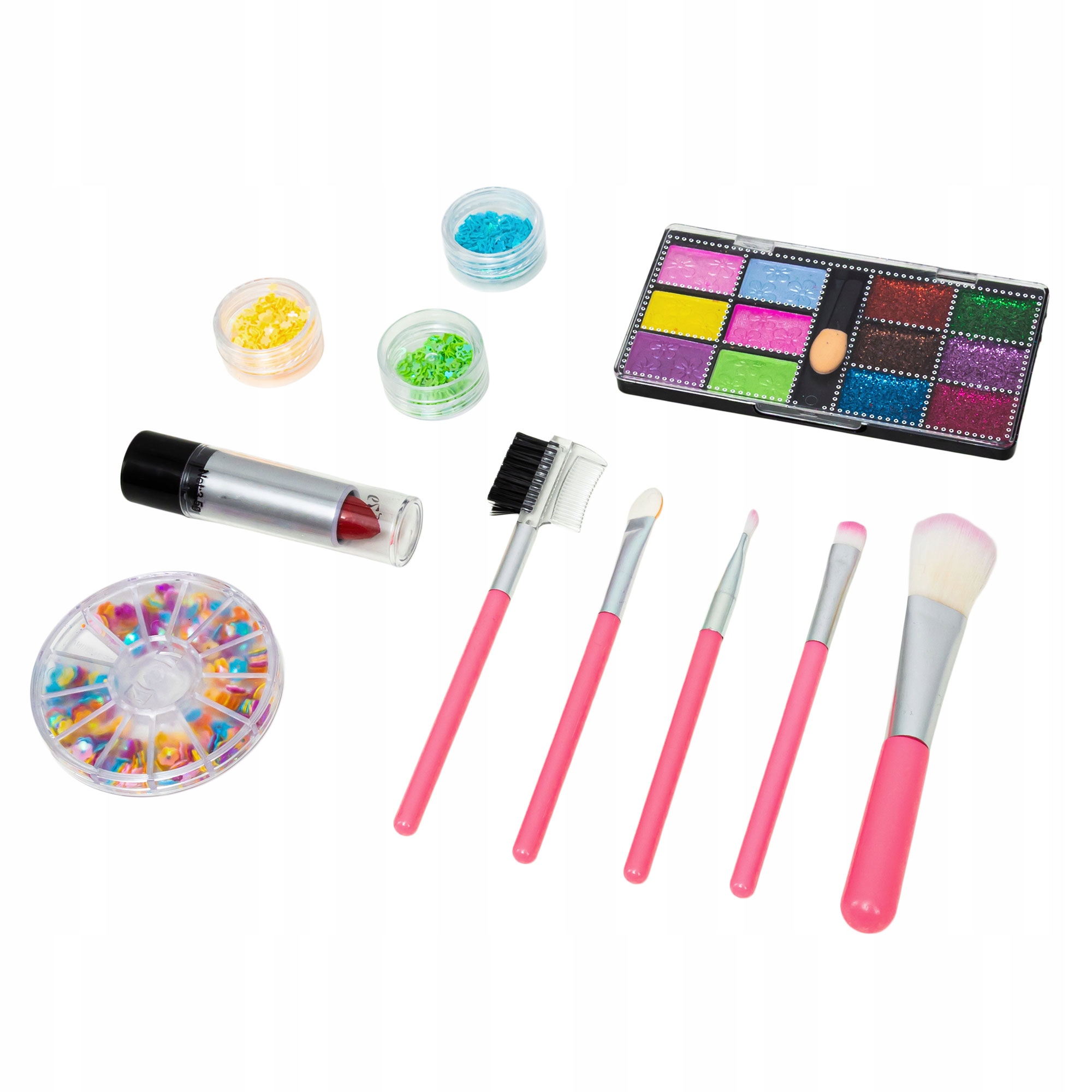 Kolorowy zestaw beauty to idealny prezent dla każdej pociechy lubiącej bawić się w wizażystkę! Zestaw zawiera wszystkie niezbędne elementy zarówno do makijażu jak i paznokci!