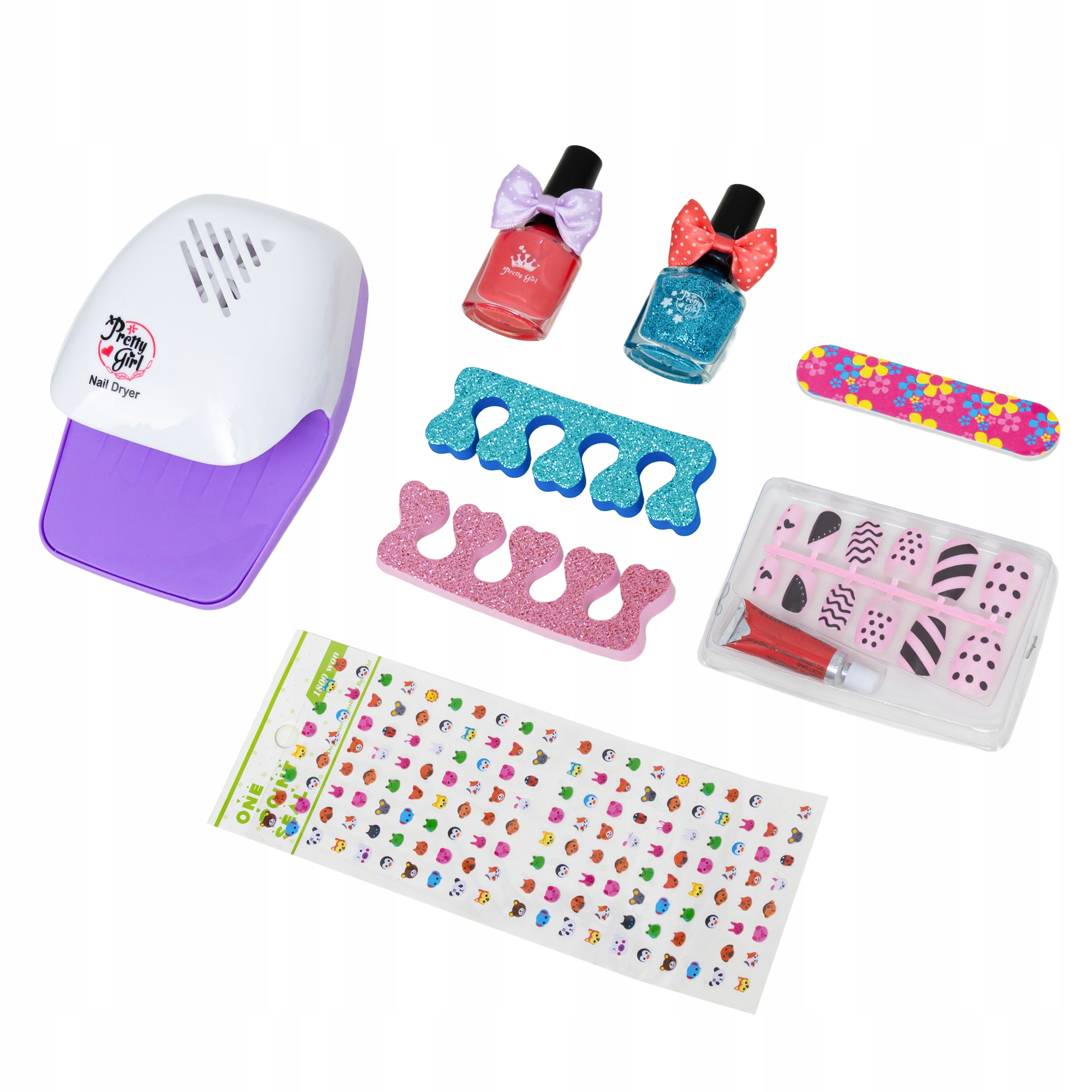 Elementy zestawu takie jak naklejki, pilniczek, separatory czy lakiery posiadają różne kolory, wysyłane są losowo. Produkt oryginalnie zapakowany, idealnie nadaje się na prezent!