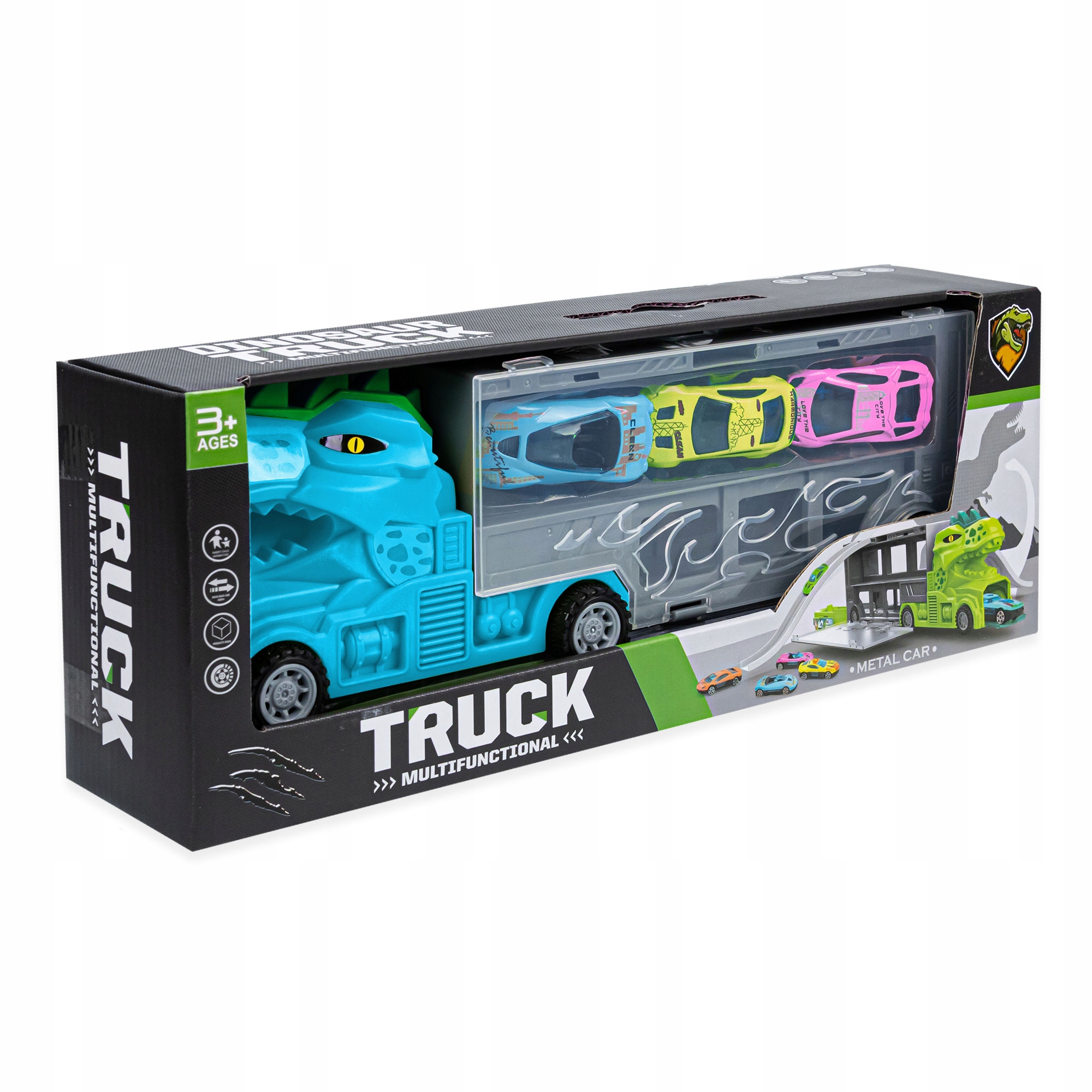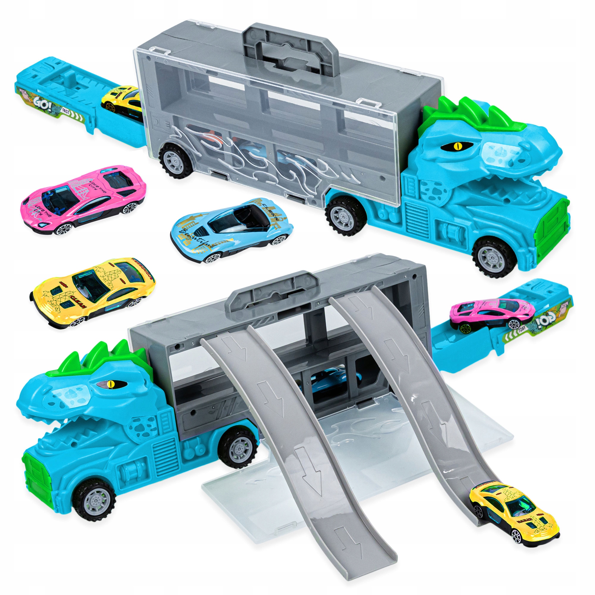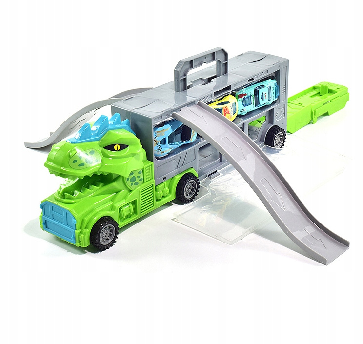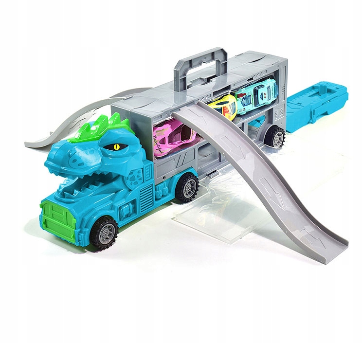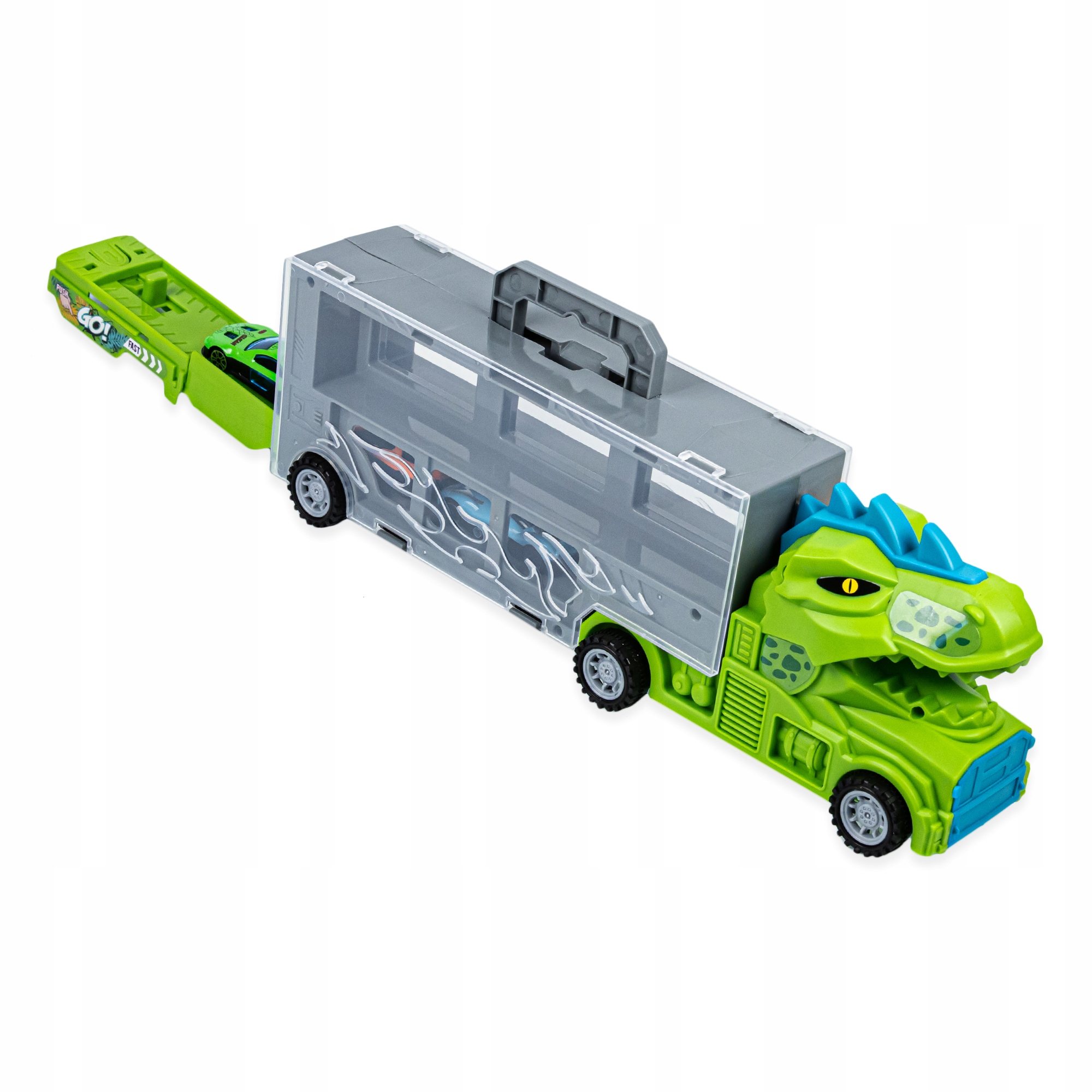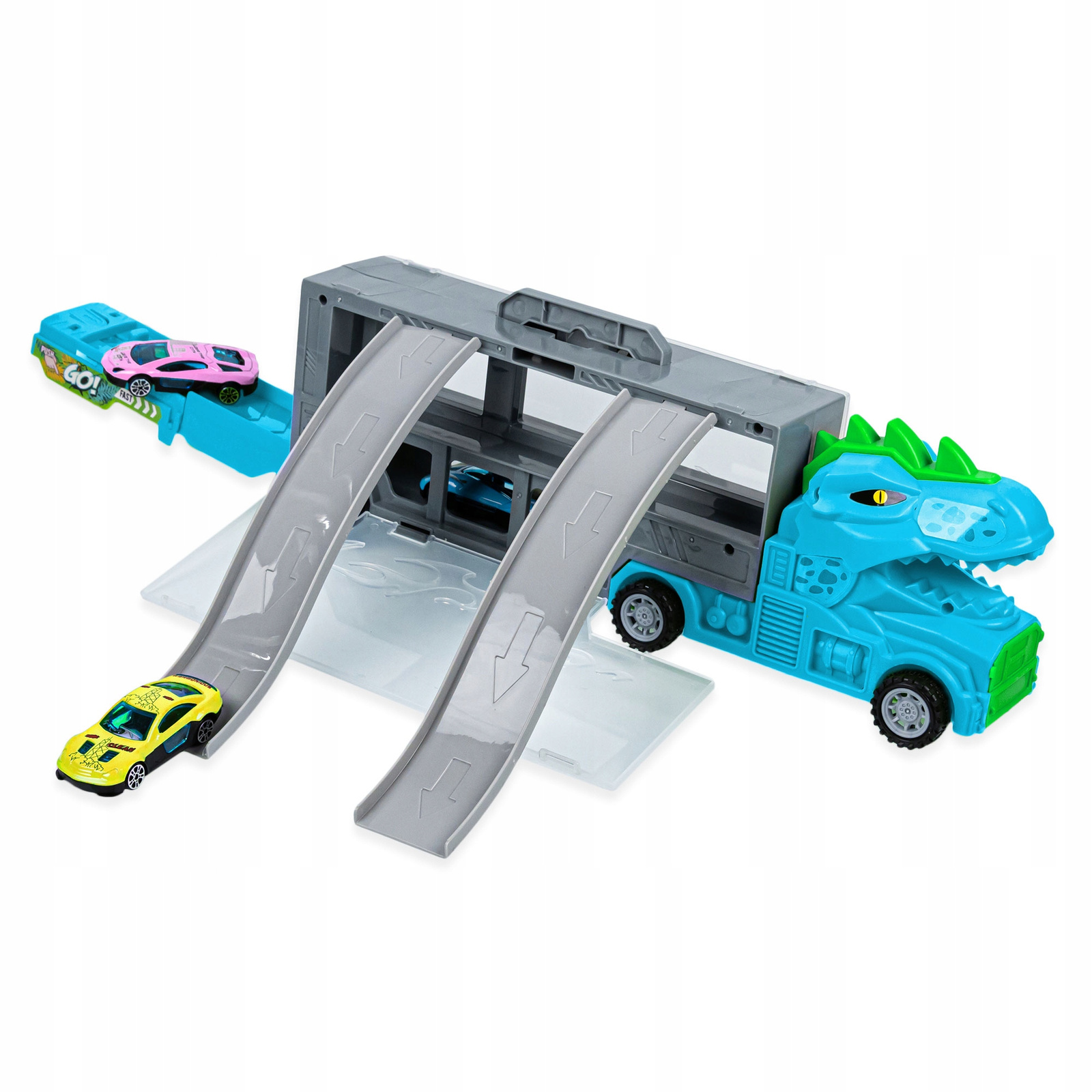 LAWETA DINOZAUR CIĘŻARÓWKA ZJEŻDŻALNIA 3 AUTKA WYRZUTNIA SAMOCHODÓW DINO