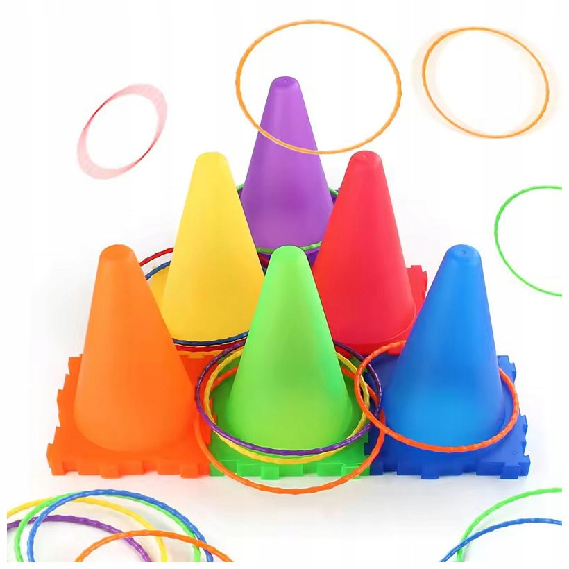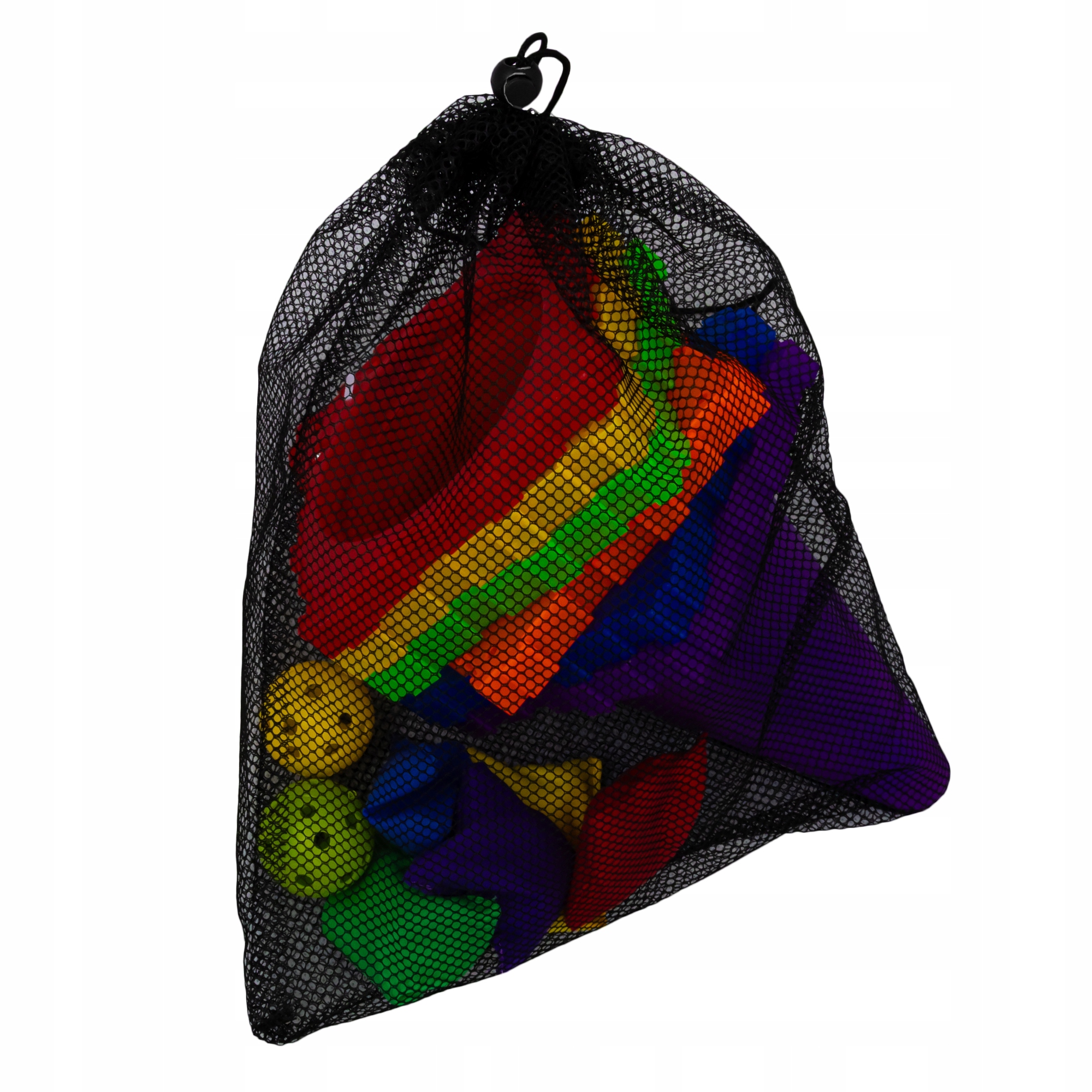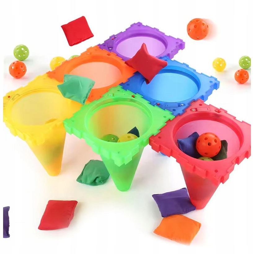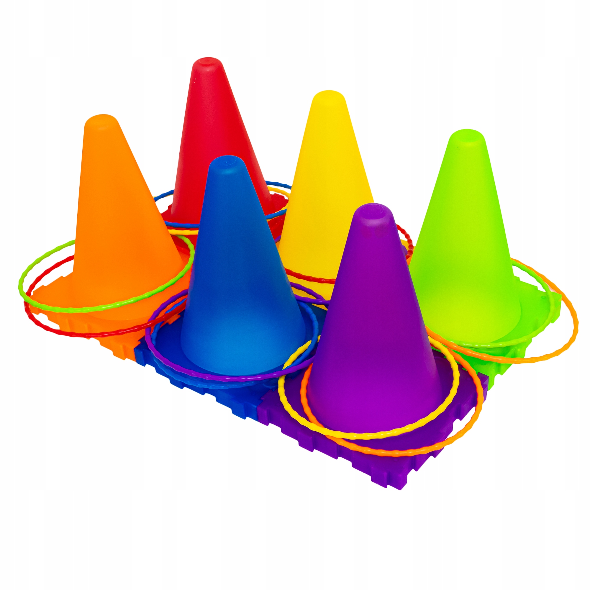 Zestaw zawiera aż 6 kolorowych pachołków, obręcze, piłeczki i woreczki – wszystko, czego potrzeba do kreatywnej zabawy solo lub z przyjaciółmi. Gra doskonale sprawdzi się podczas imprez urodzinowych, zajęć ruchowych oraz jako element torów przeszkód!