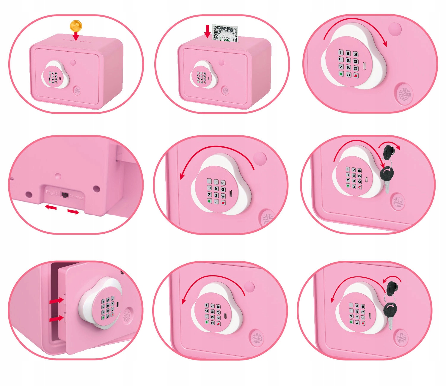 SKARBONKA SEJF DLA DZIECI NA HASŁO PIN KLUCZYK EFEKTY DŹWIĘKOWE DIODY LED