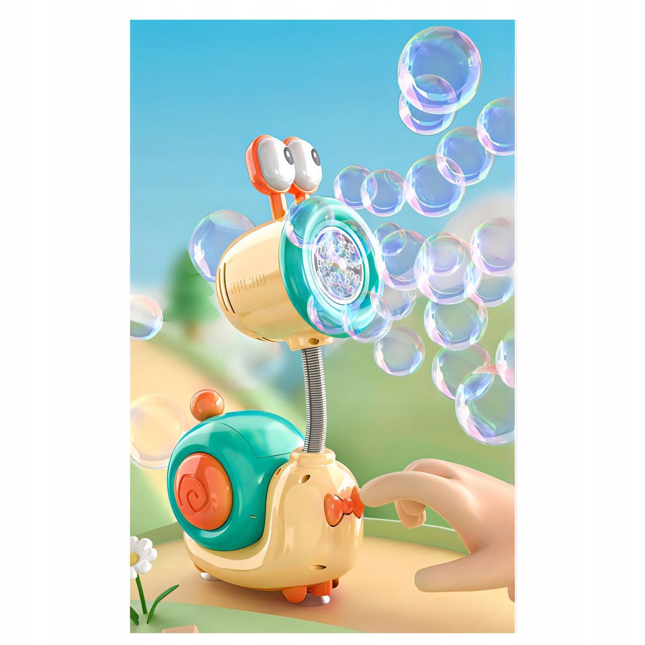 Zabawa ślimakiem do baniek pobudza wyobraźnię, zachęca dzieci do aktywności na świeżym powietrzu i rozwija koordynację wzrokowo-ruchową w radosny, bezpieczny sposób.