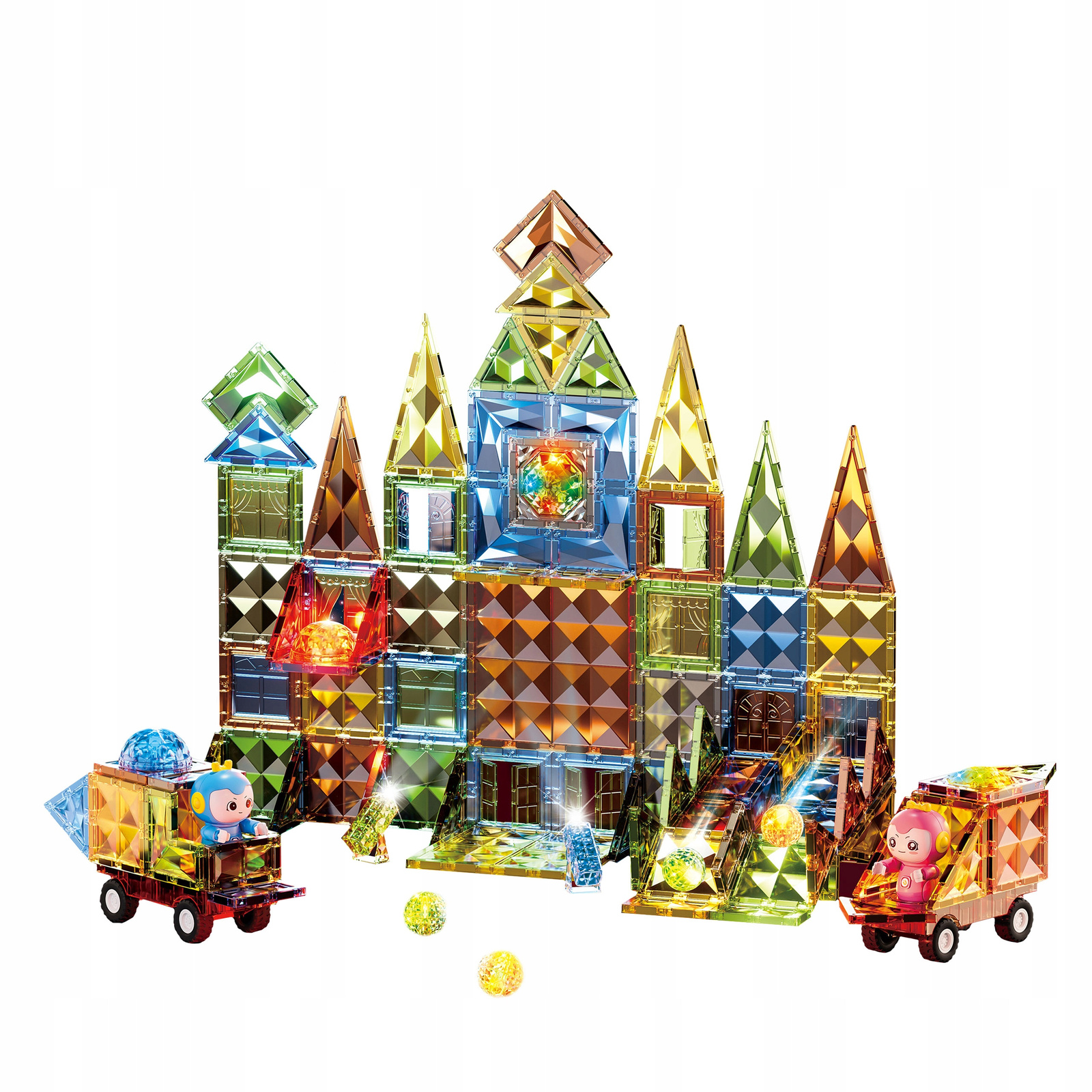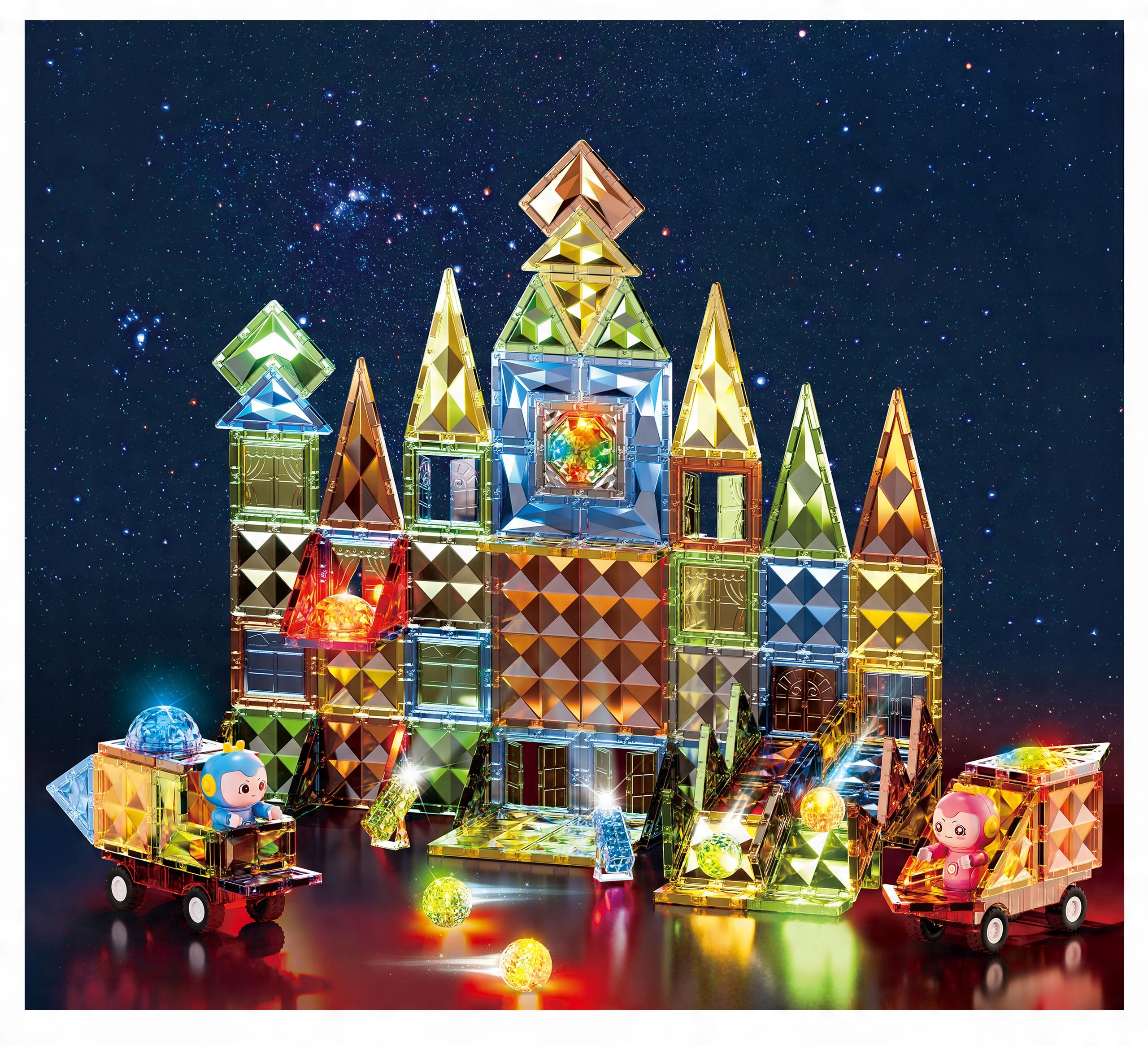 Stwórz magiczne, rozświetlone miasteczko! Klocki magnetyczne z diamentowym połyskiem i świecącymi kulami – idealne na prezent!