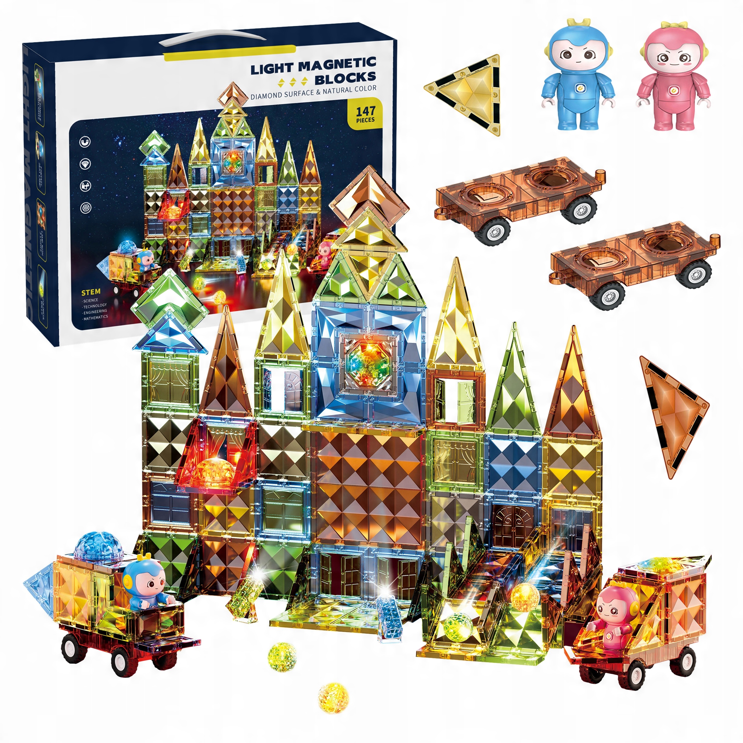 MAGNETYCZNE KLOCKI KONSTRUKCYJNE – POJAZDY, FIGURKI, OŚWIETLENIE LED, AŻ 147EL.