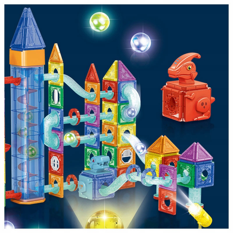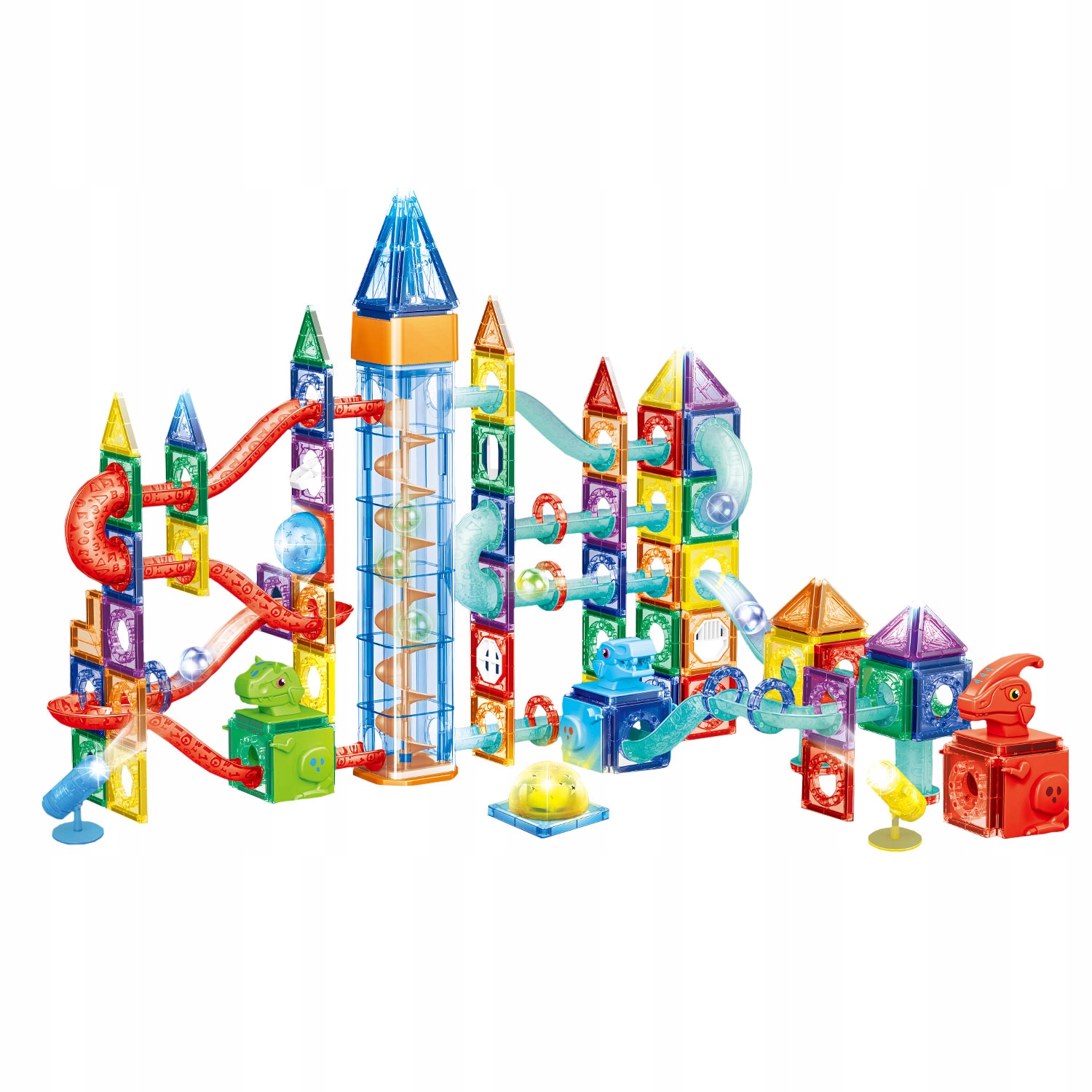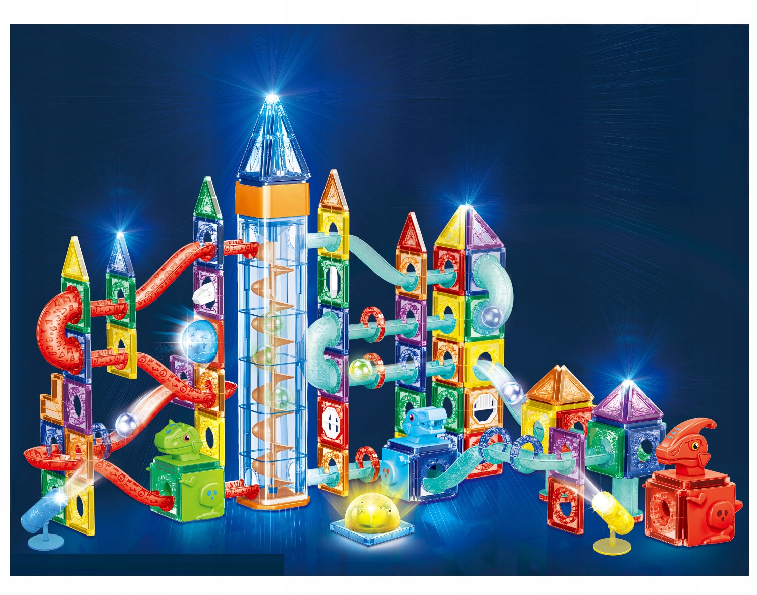 ŚWIECĄCY TOR MAGNETYCZNY DINOZAUR DLA DZIECI KLOCKI EDUKACYJNE WINDA 194 EL
