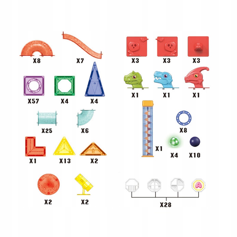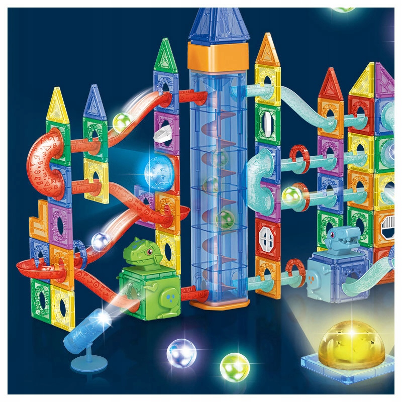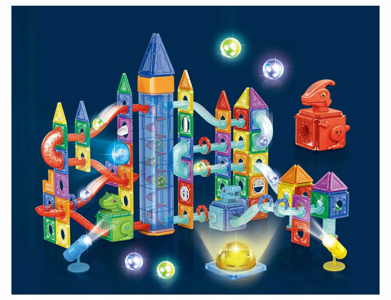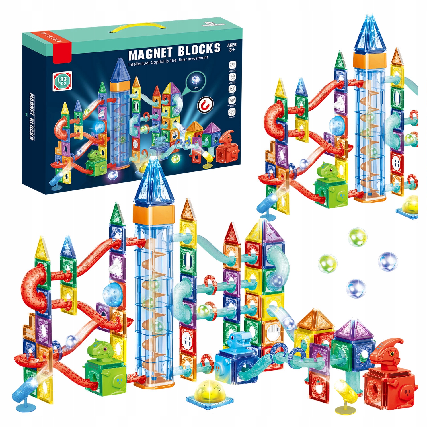 ŚWIECĄCY TOR MAGNETYCZNY DINOZAUR DLA DZIECI KLOCKI EDUKACYJNE WINDA 194 EL