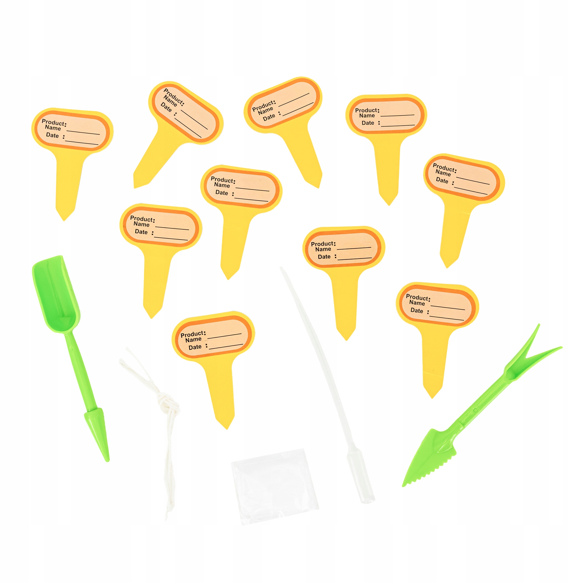 - Wiele akcesoriów ogrodniczych w zestawie – łopatki, doniczki, pipeta, etykiety