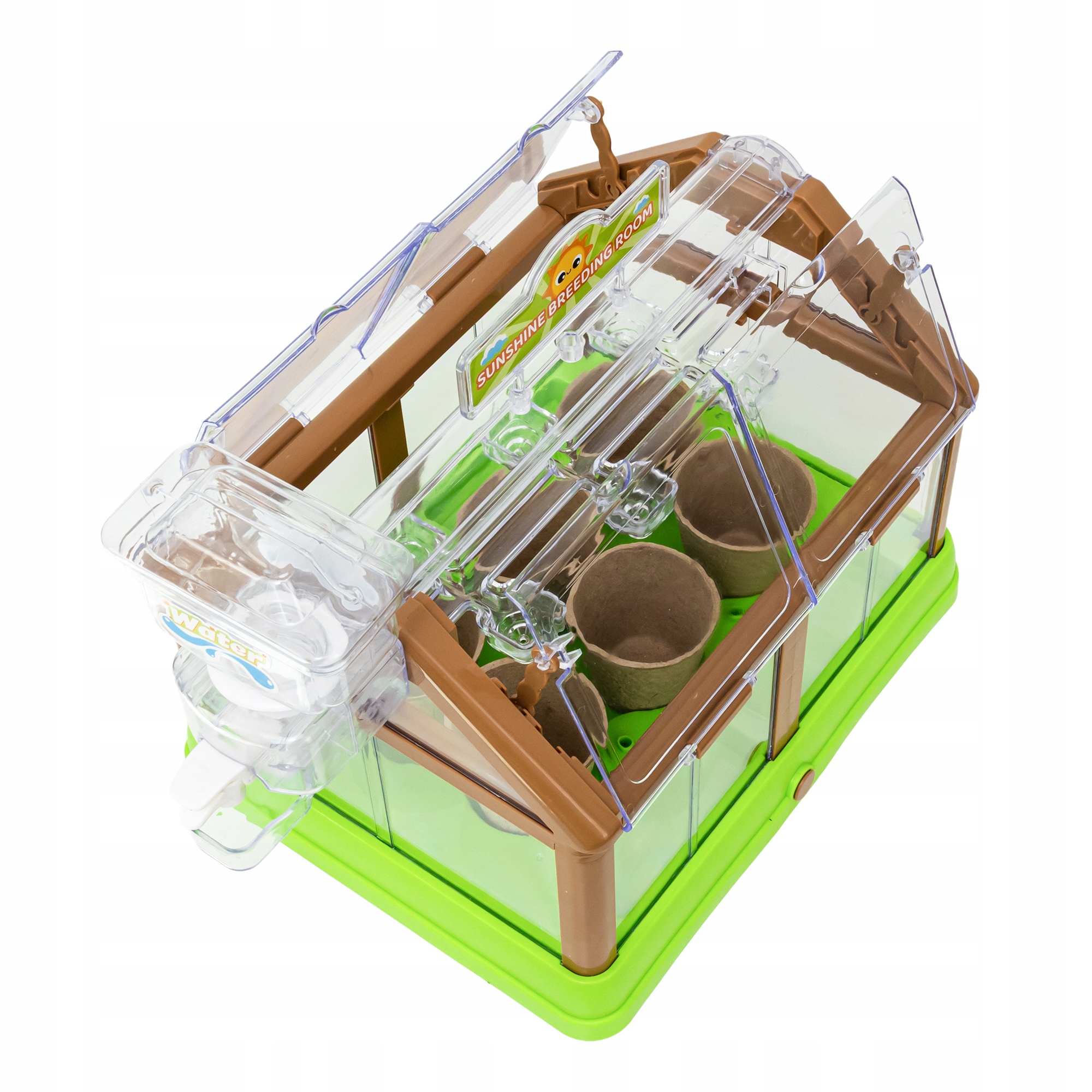 Dzięki przezroczystym ściankom szklarni dziecko może na bieżąco obserwować rozwój swoich roślin, prowadzić notatki i uczyć się odpowiedzialności.