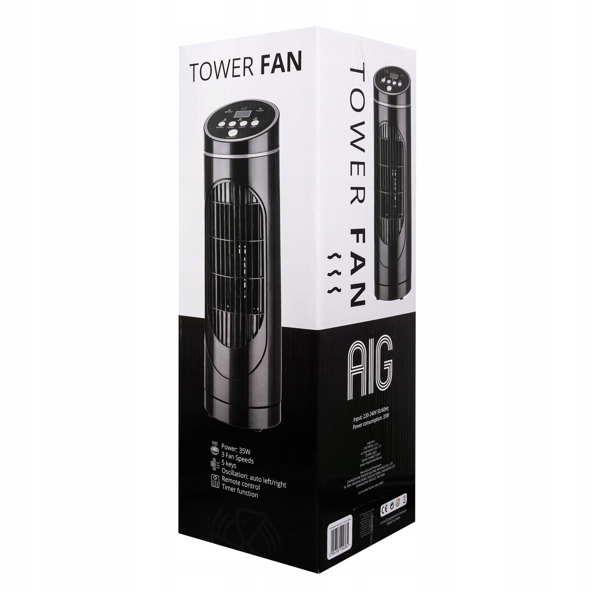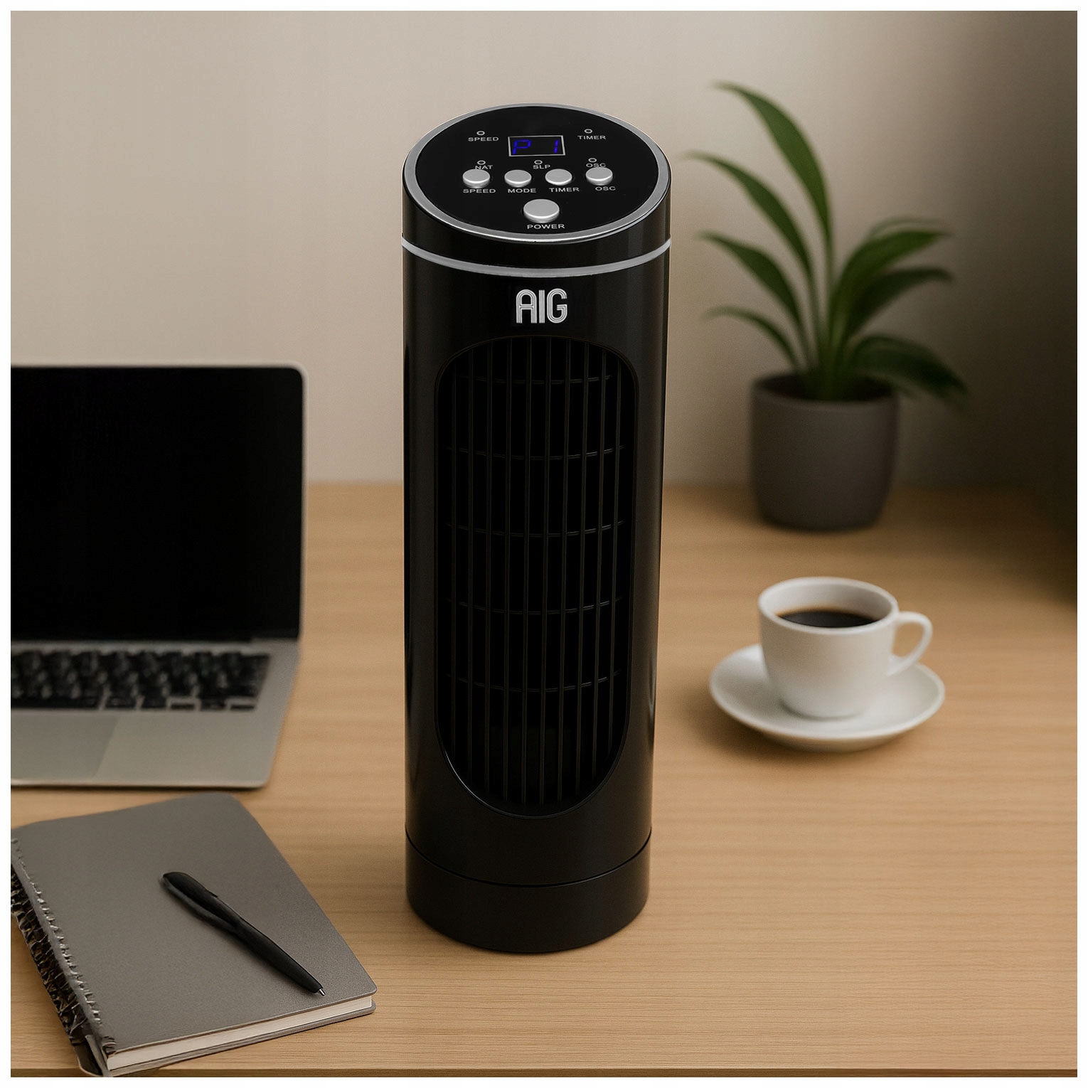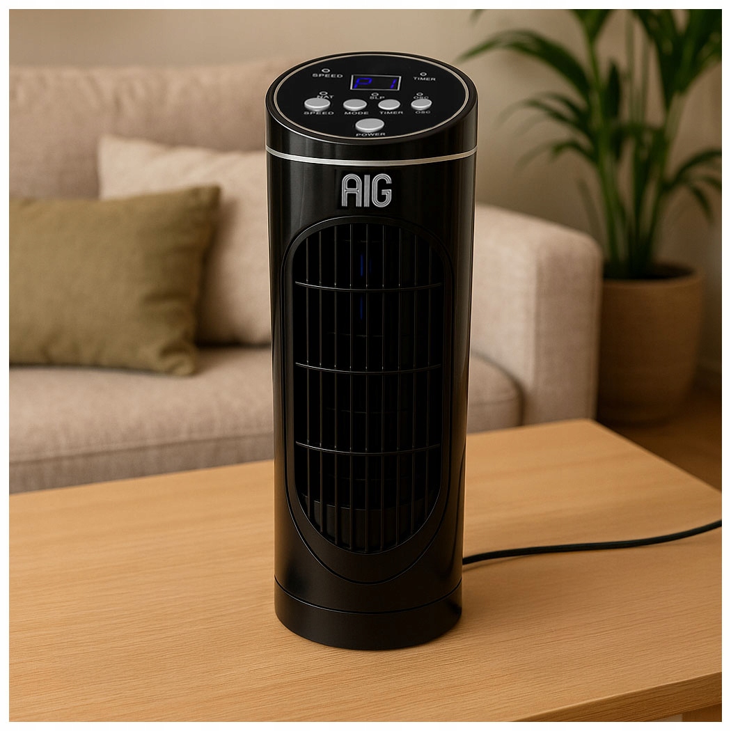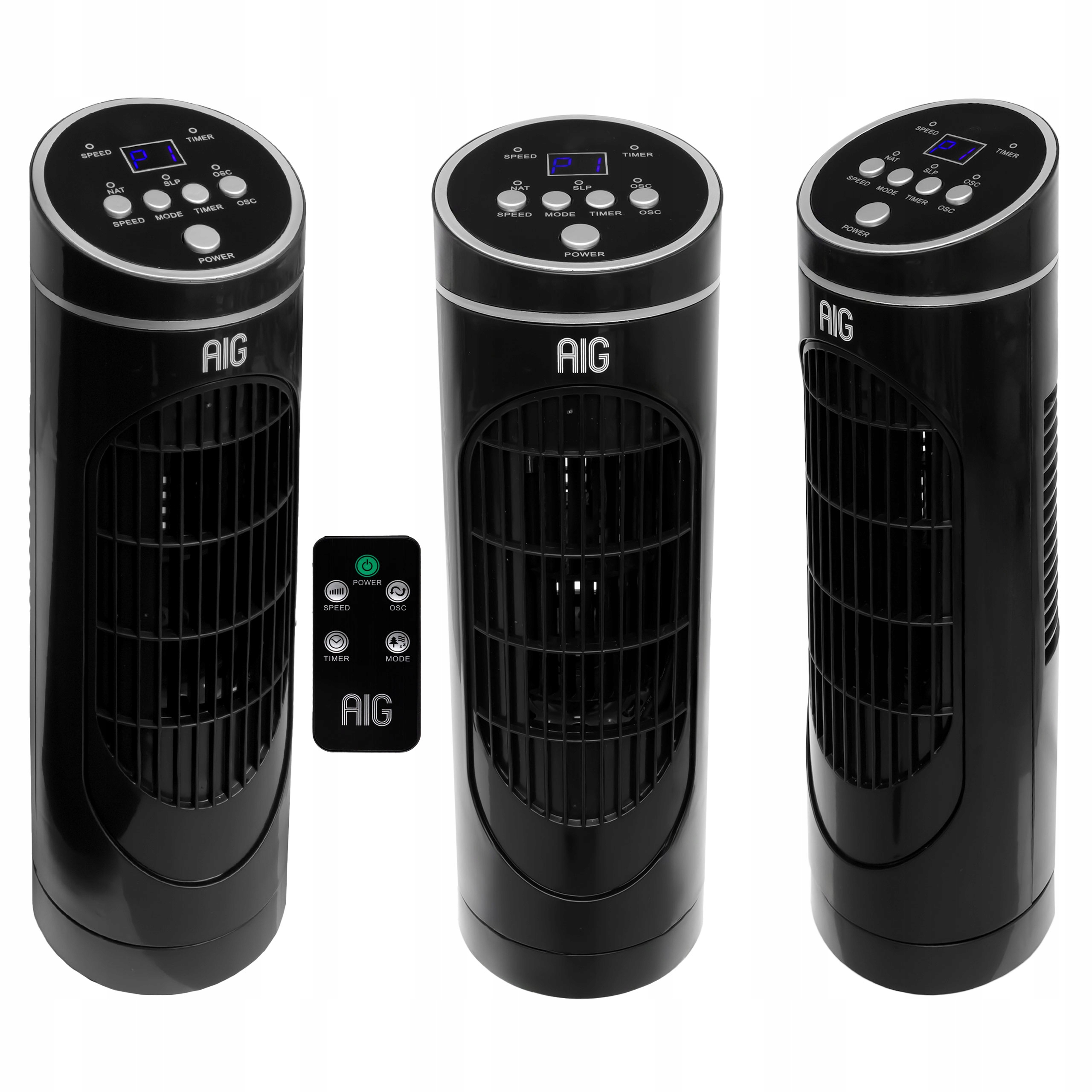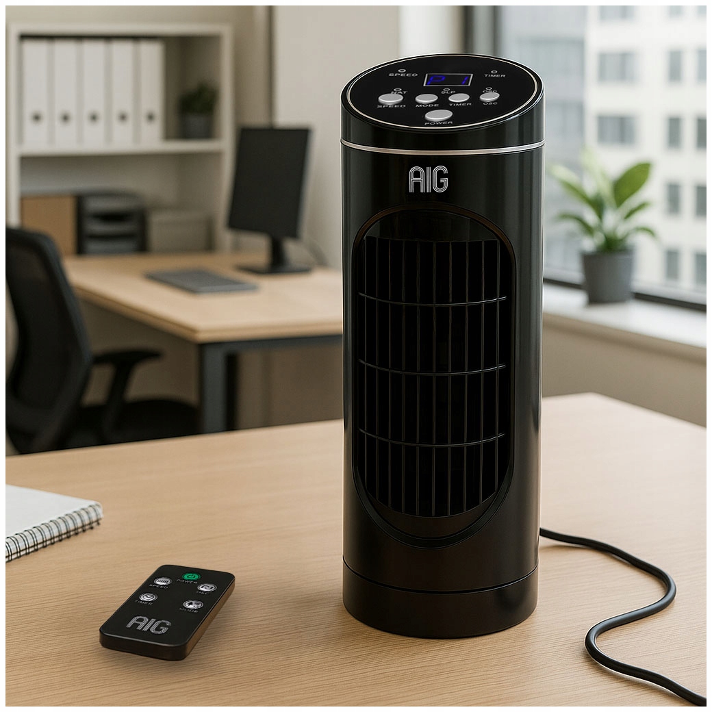 WENTYLATOR KOLUMNOWY BIURKOWY WYŚWIETLACZ WIATRAK 3 TRYBY PRACY TIMER PILOT