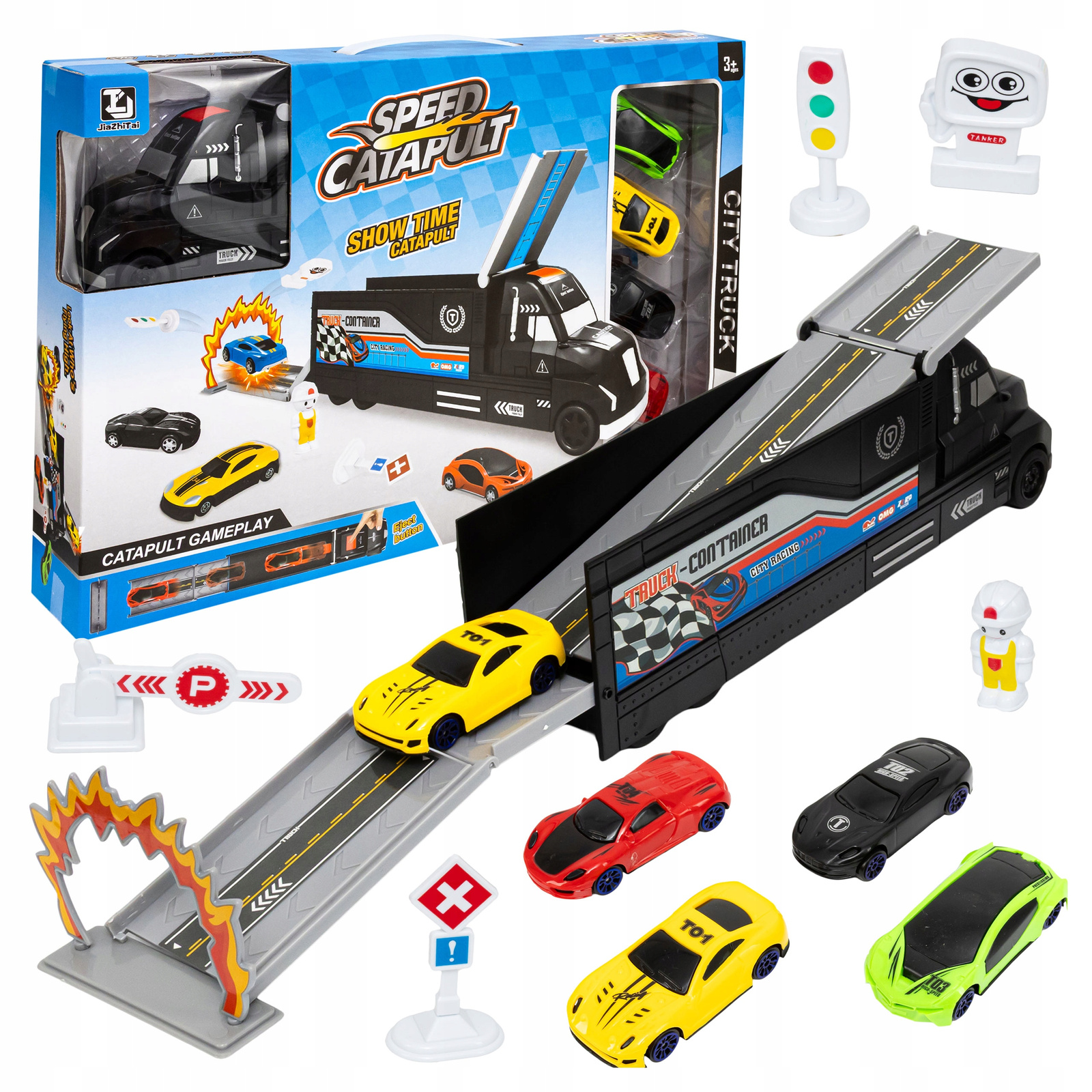 WYRZUTNIA AUTEK CIĘŻARÓWKA DLA DZIECI ZJEŻDŻALNIA FIGURKA ZNAKI DROGOWE