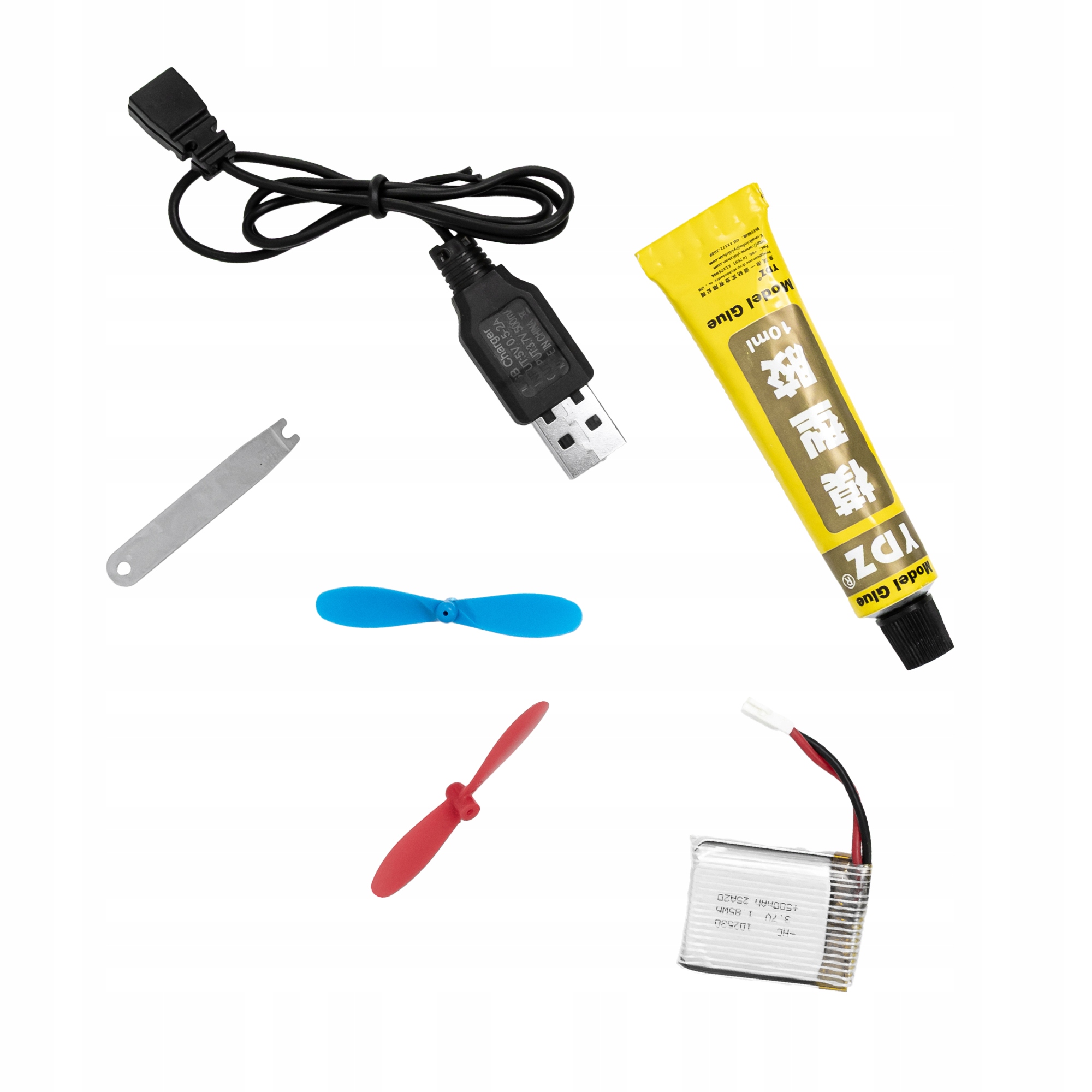 - Zasilanie samolotu: wymienny akumulator 500mAh 3.7V (w zestawie)