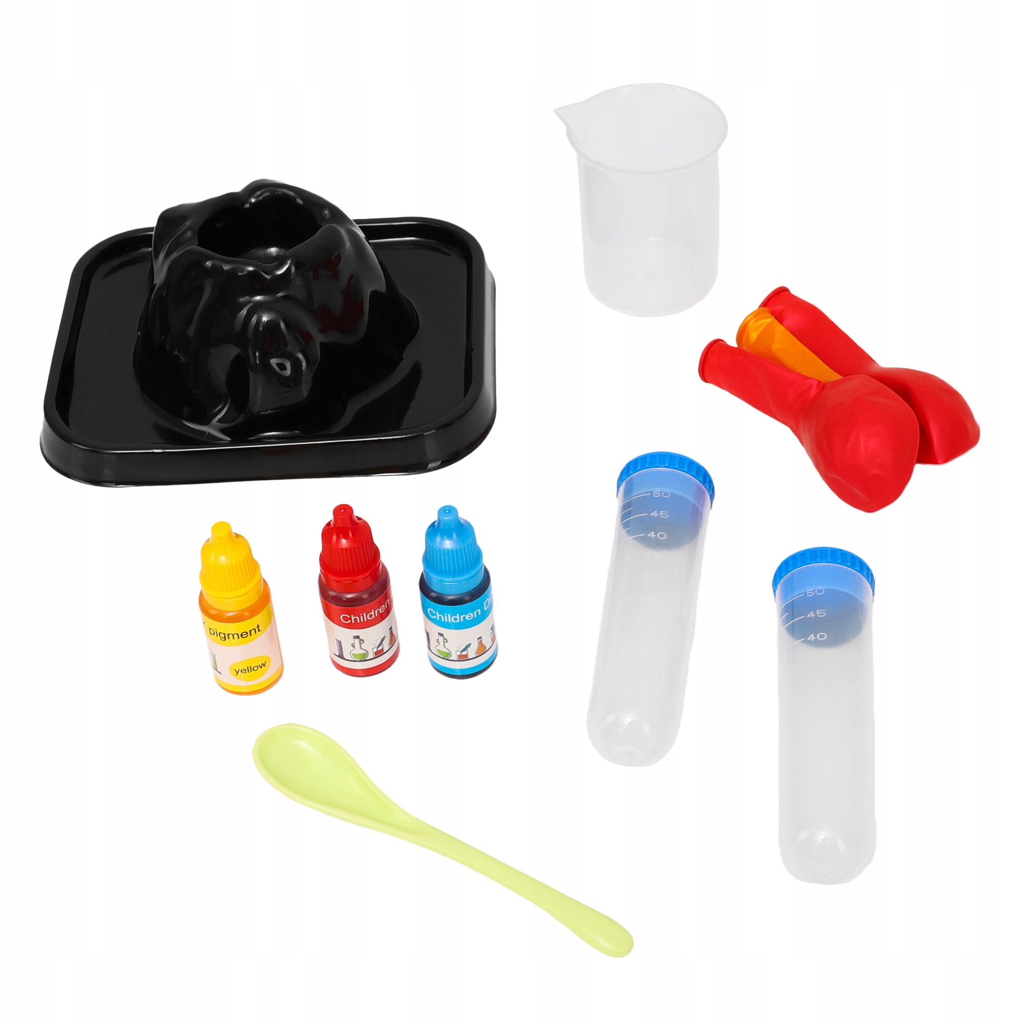 Dziecko może wykonać wulkan, śnieżną górę, fontannę tęczową, zmianę koloru, eksperymenty z balonem i ciśnieniem i inne. Każdy eksperyment jest dokładnie opisany w dołączonej instrukcji w języku angielskim.