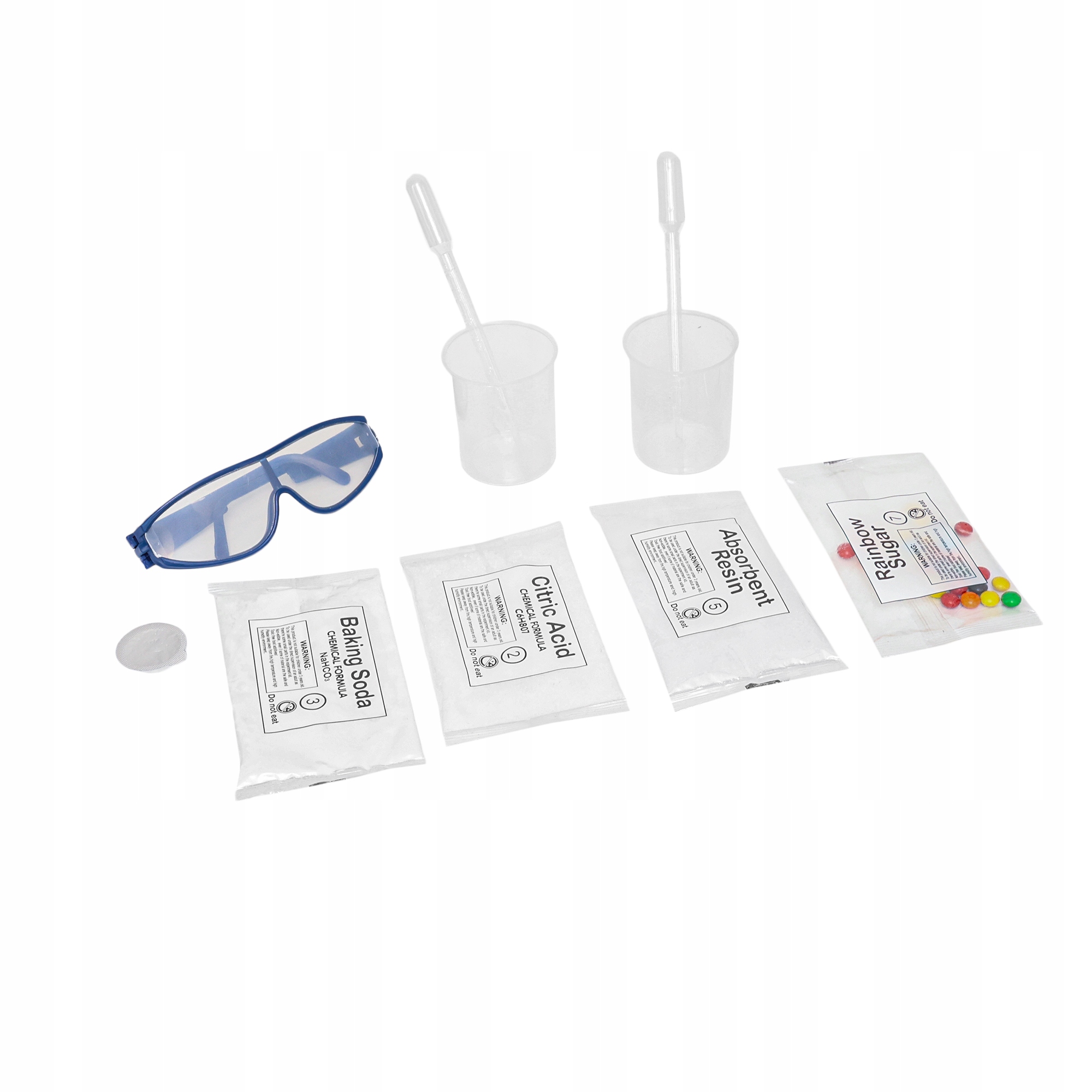 Zestaw jest bardzo duży i odpowiednio rozbudowany aby można było wykonać z jego pomocą wiele ciekawych eksperymentów. W opakowaniu znajdziesz między innymi barwniki, pipetki, fiolki, proszki, balony, mieszalniki, kubeczki z miarką itp.