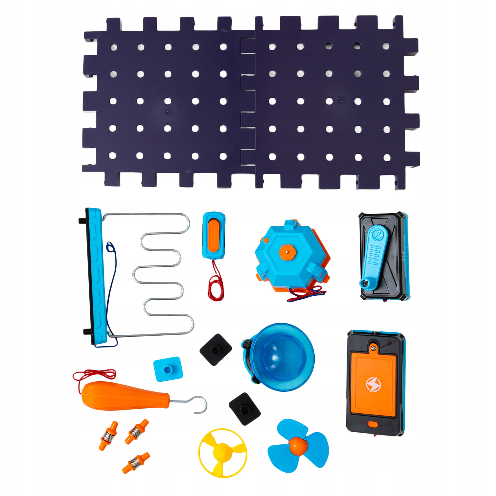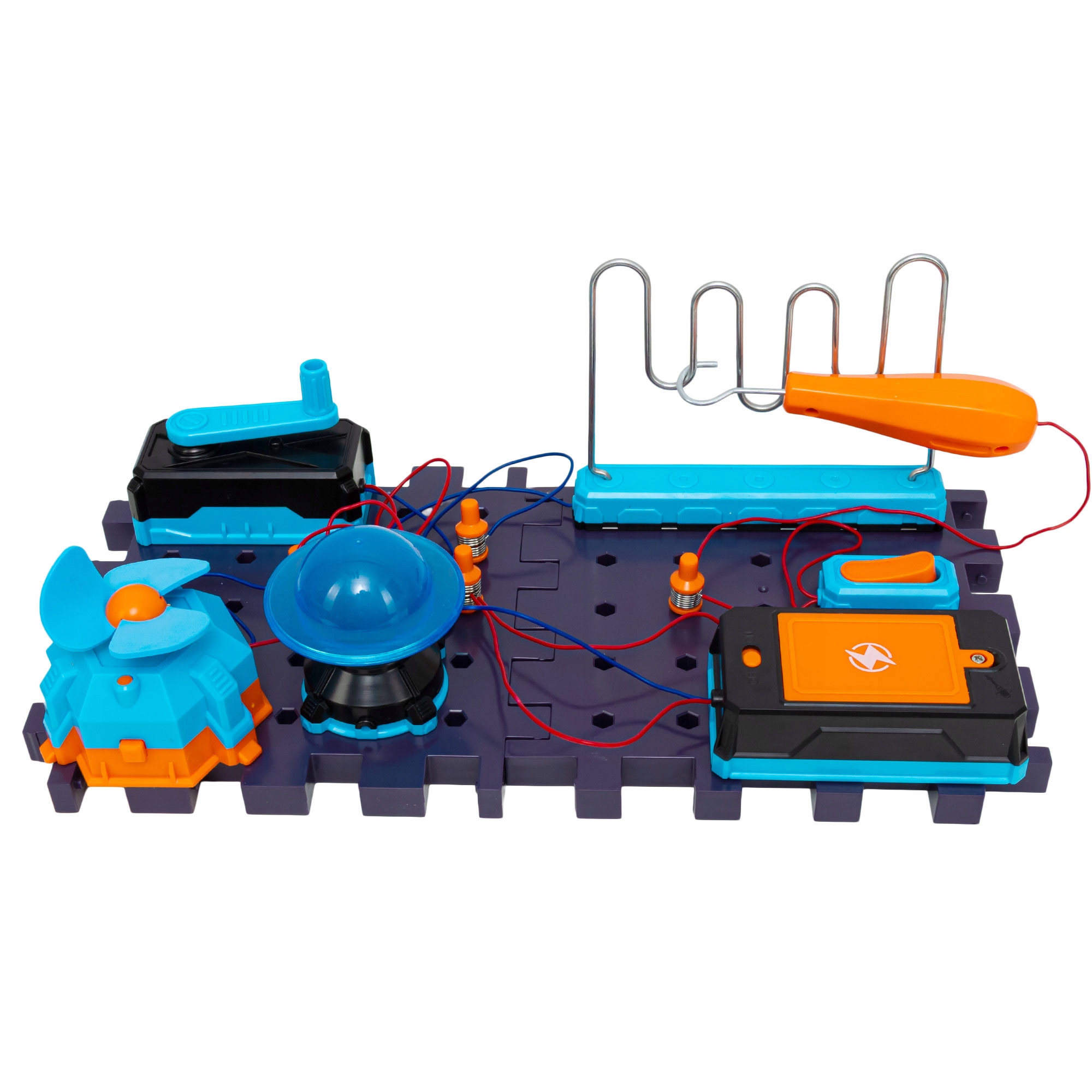 Zestaw zawiera elementy do tworzenia zarówno prostych jak i bardziej zaawansowanych obwodów szeregowych i równoległych. Może działać na baterie (3 x AAA 1,5V, brak w zestawie) lub dzięki generatorowi ręcznemu, co pozwala na użycie i zrozumienie różnych źródeł energii.