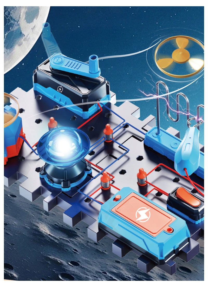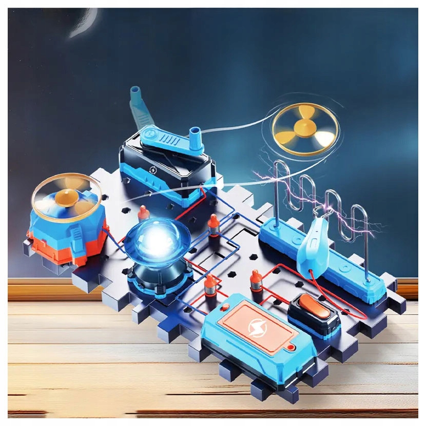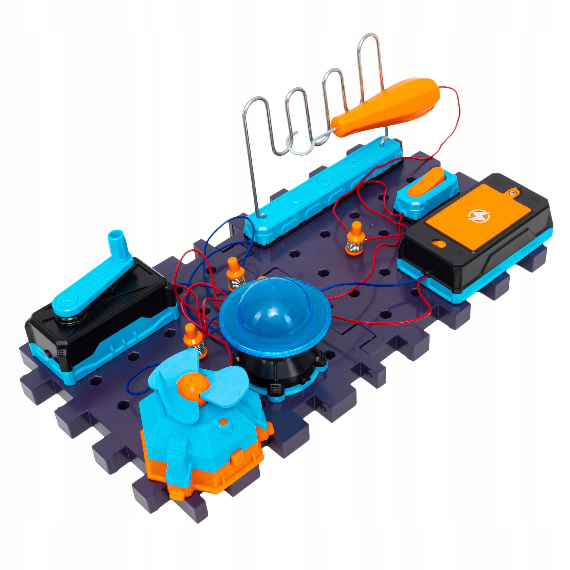 Zestaw składa się z kolorowych, łatwych do łączenia modułów, które umożliwiają dziecku zbudowanie rzeczywistego obwodu elektrycznego. Za pomocą prostych czynności dziecko dowiaduje się, czym są prąd, źródło zasilania, dioda LED, wentylator, przełącznik i wiele innych komponentów.