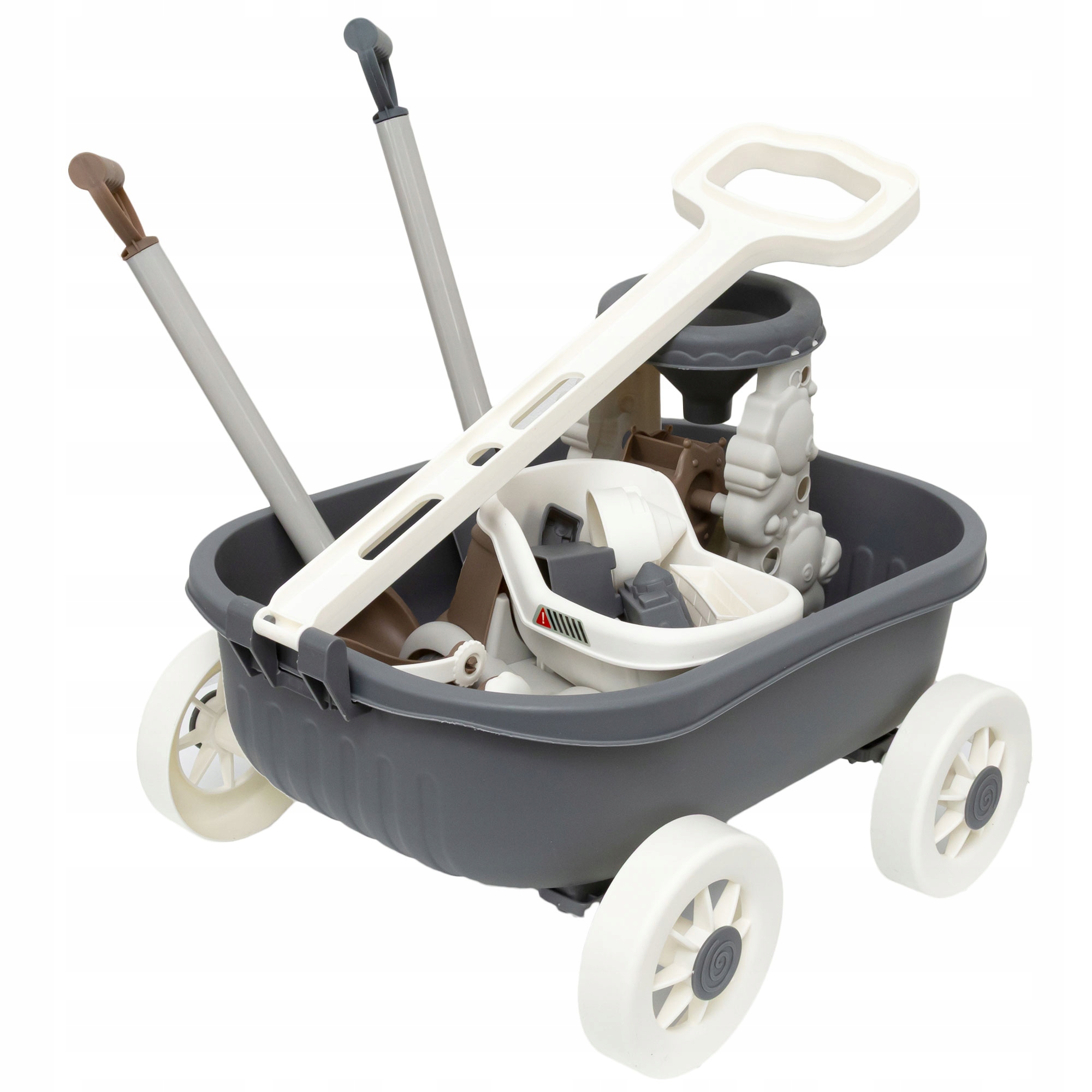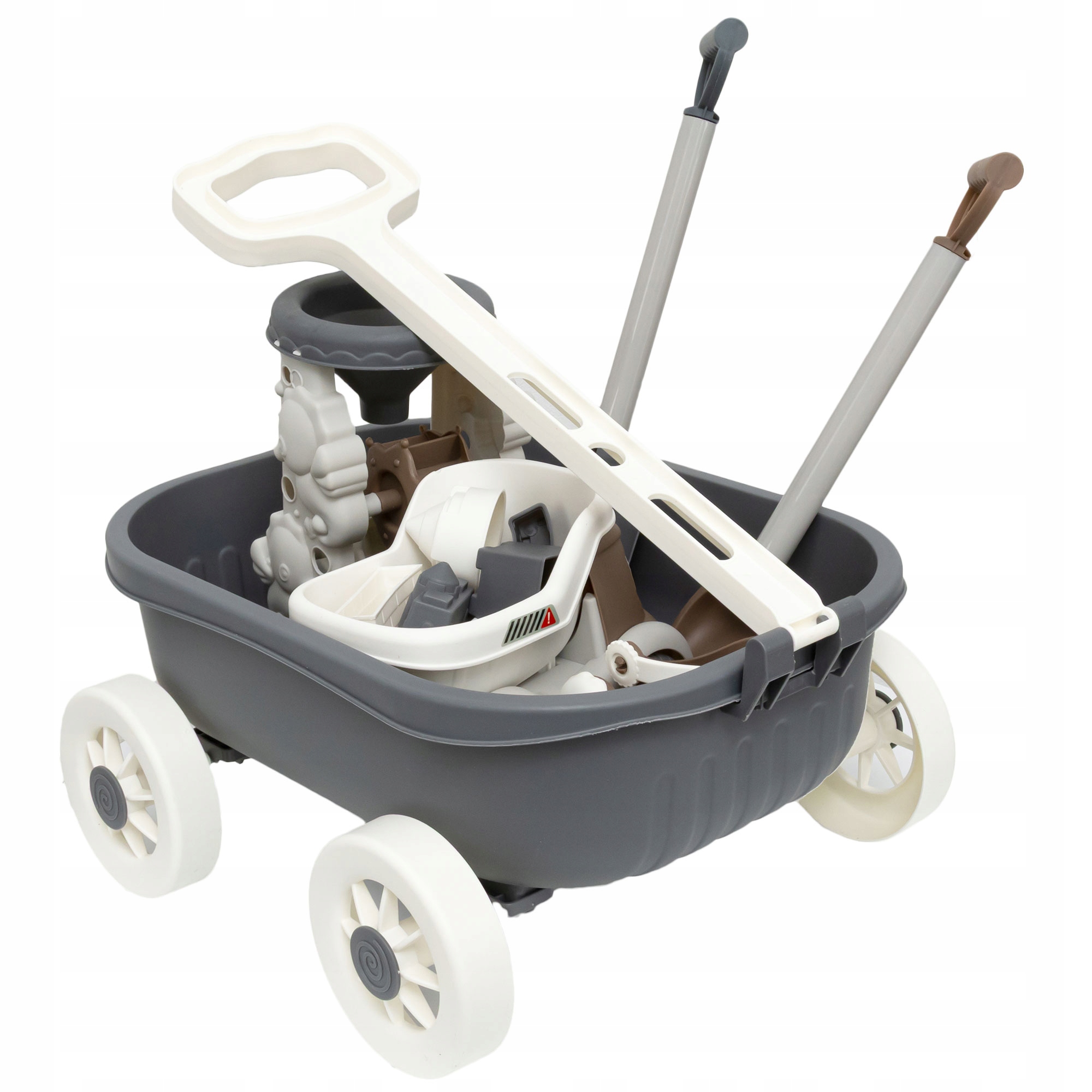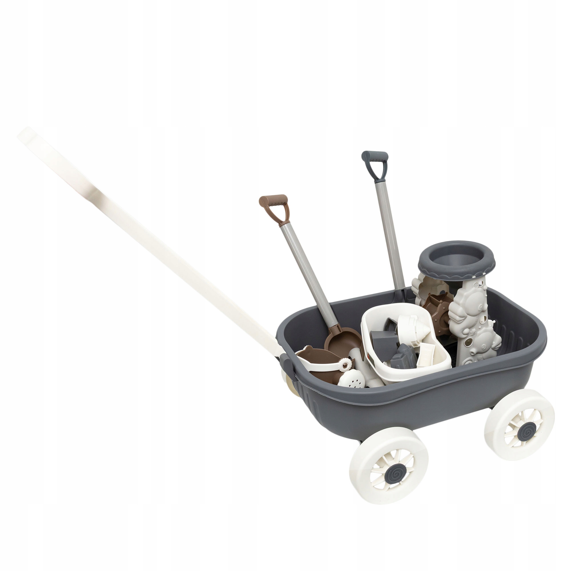 Piękne kolory i zabawne kształty przyciągną uwagę maluchów, zachęcając je do twórczej zabawy. Zestaw jest lekki i łatwy do przenoszenia, co sprawia, że idealnie nadaje się na wycieczki na plażę, do parku czy na plac zabaw. Wózek posiada kółka oraz rączkę do ciągnięcia. Możesz w łatwy sposób przemieszczać się z całym zestawem akcesoriów.